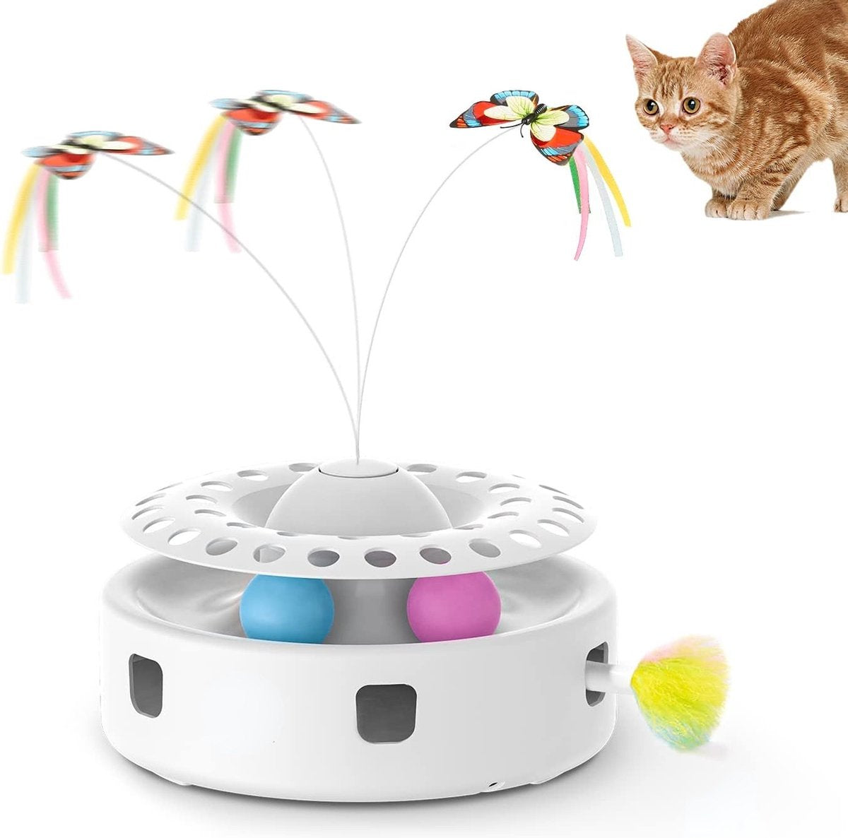Kat Speelgoed 3-In-1 Smart Interactieve Intelligente Kitten Speelgoed, Fladderende Vlinder, willekeurige Bewegende Veer, Beweeg Fit En Gezond Speeltje Huisdier Poes Kat Kitten