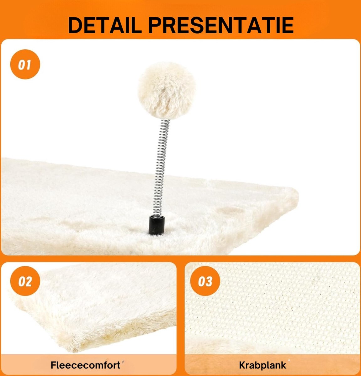 Beschermt je meubels: Zeg vaarwel tegen gekrabde meubels! Onze Kattenklim Wand biedt een uitlaatklep voor de natuurlijke krabbehoefte van je katten, waardoor je kostbare meubels gespaard blijven. De Kattenklimwandset is om te luieren, klimmen, spelen. Maar je moet je kat ervan weerhouden om je meubels te krassen. Daarom is het noodzakelijk om katten aangewezen speelplekken ter beschikking te stellen om je waardevolle meubels te beschermen.