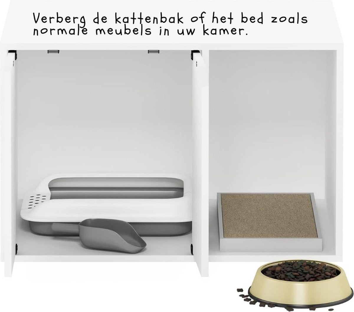 De Kattenbak Kast is niet zomaar een meubelstuk; het is een elegante aanvulling op je huis. Dankzij het eenvoudige en moderne design past de kast moeiteloos in elke interieurstijl, van klassiek tot eigentijds. De kast kan ook dienen als decoratief element in je woning, bijvoorbeeld als bijzettafel in de woonkamer of als nachtkastje in de slaapkamer.