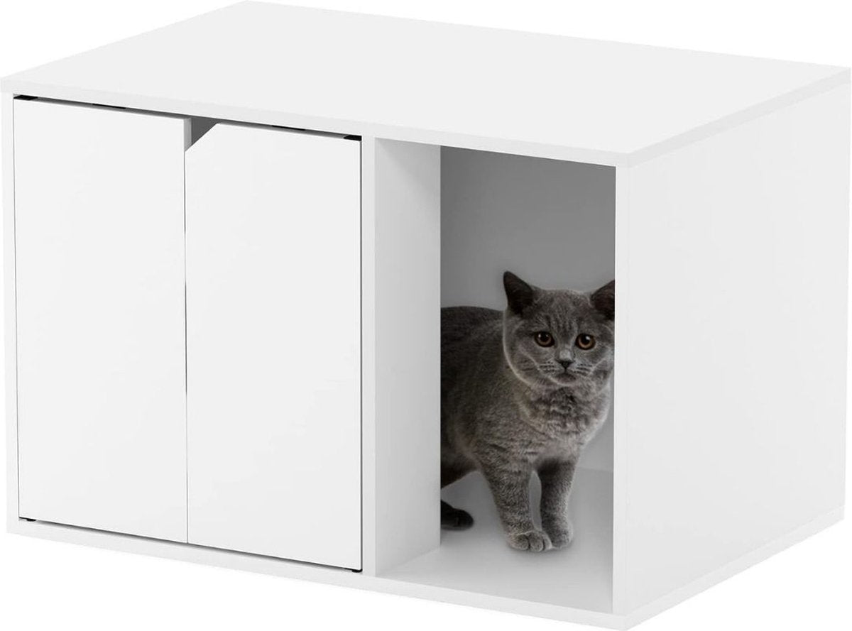 Kattenbak Kast - Kattenhuis - Kattenmand - Halmeubel – Dierenhuis - Nachtkastje - Kattenkast - Dressoir – Kattenhok - Bijzetkastje - Krabpaal - Katten Mand - 60 x 39,6 x 40 cm - Wit