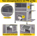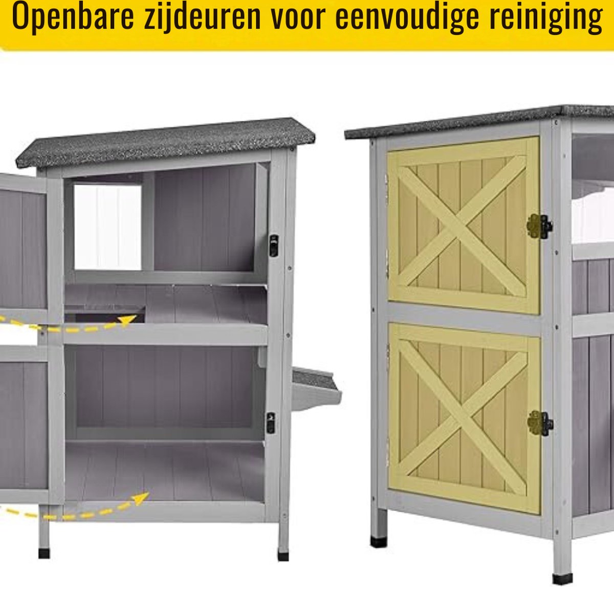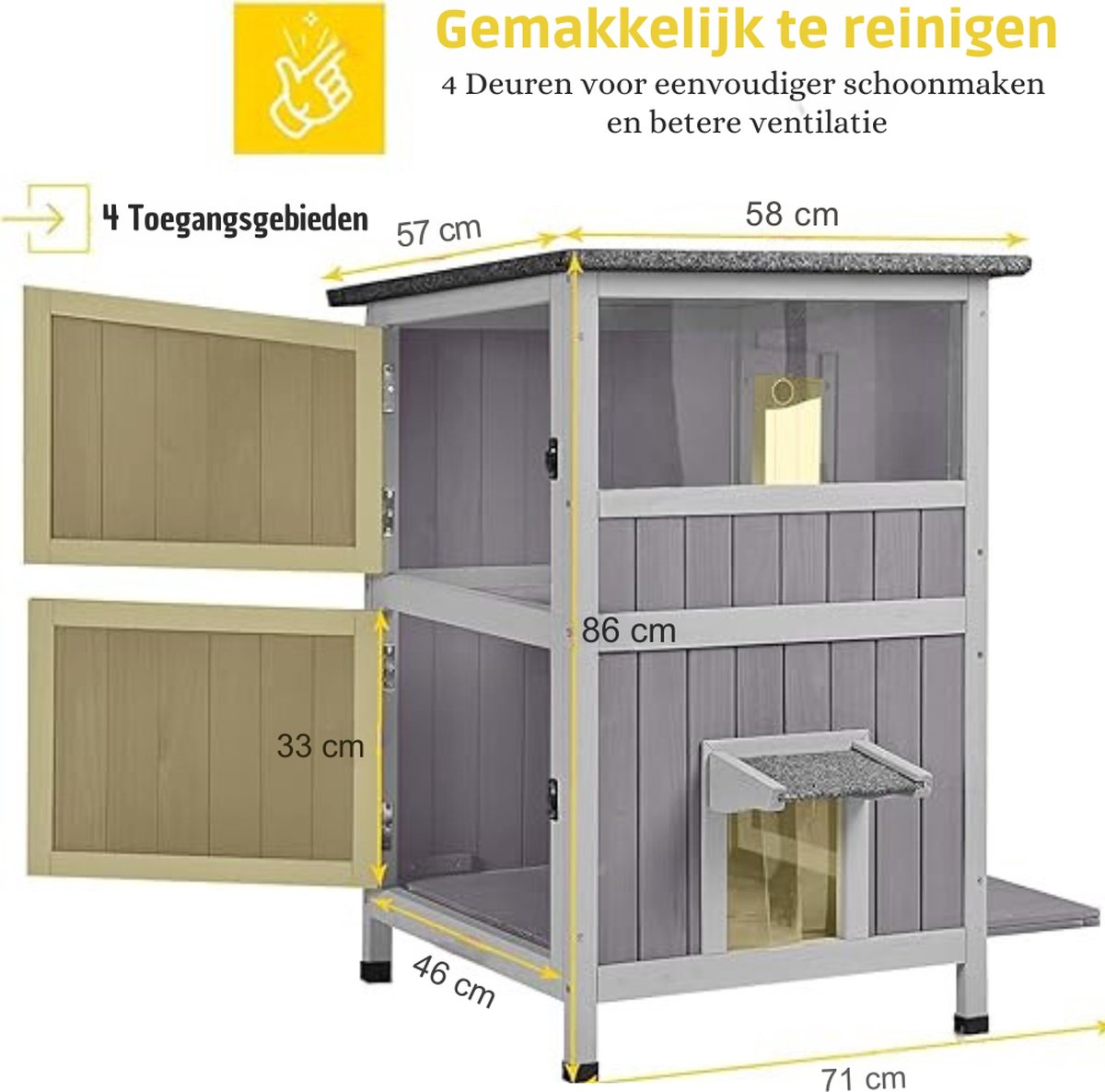 Kattenhuis voor buiten - Kattenbak Kast - Ombouw - Kattenkast voor Binnen - Kattenhok - Konijnenhok - 2 Verdiepingen - 57 x 55 x 86 cm - Dennenhout - Grijs