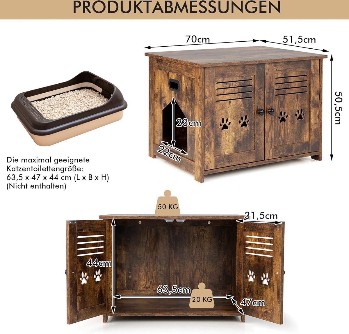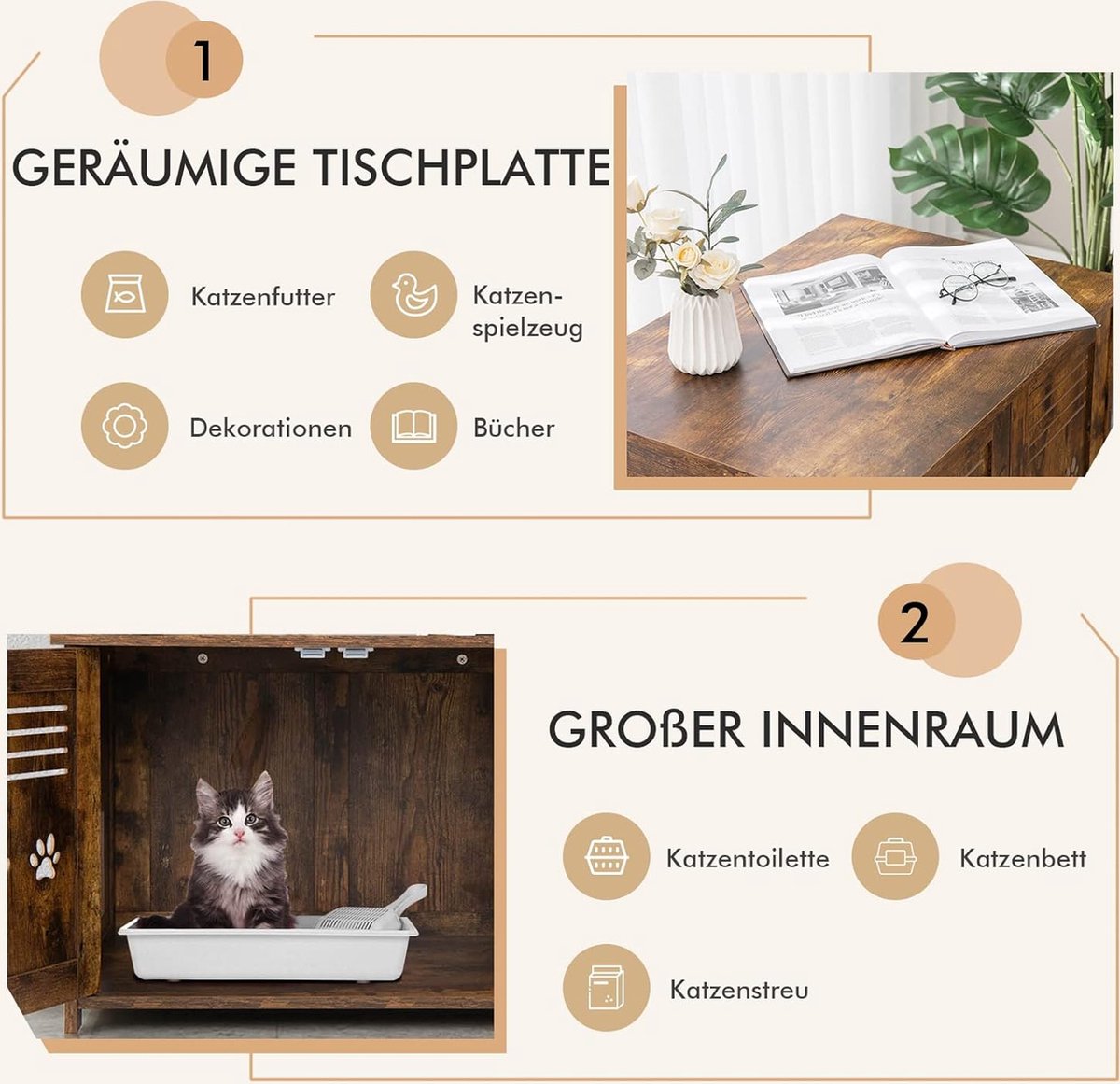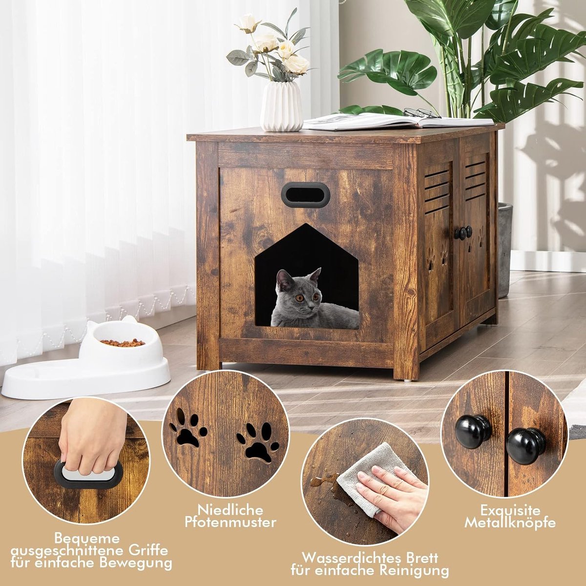 • Multifunctioneel 3-in-1 Ontwerp: Dient als een kattenbak omgeving, een gezellig kattenhuis, en een salontafel met ruim tafelblad voor je decoraties of middagthee.