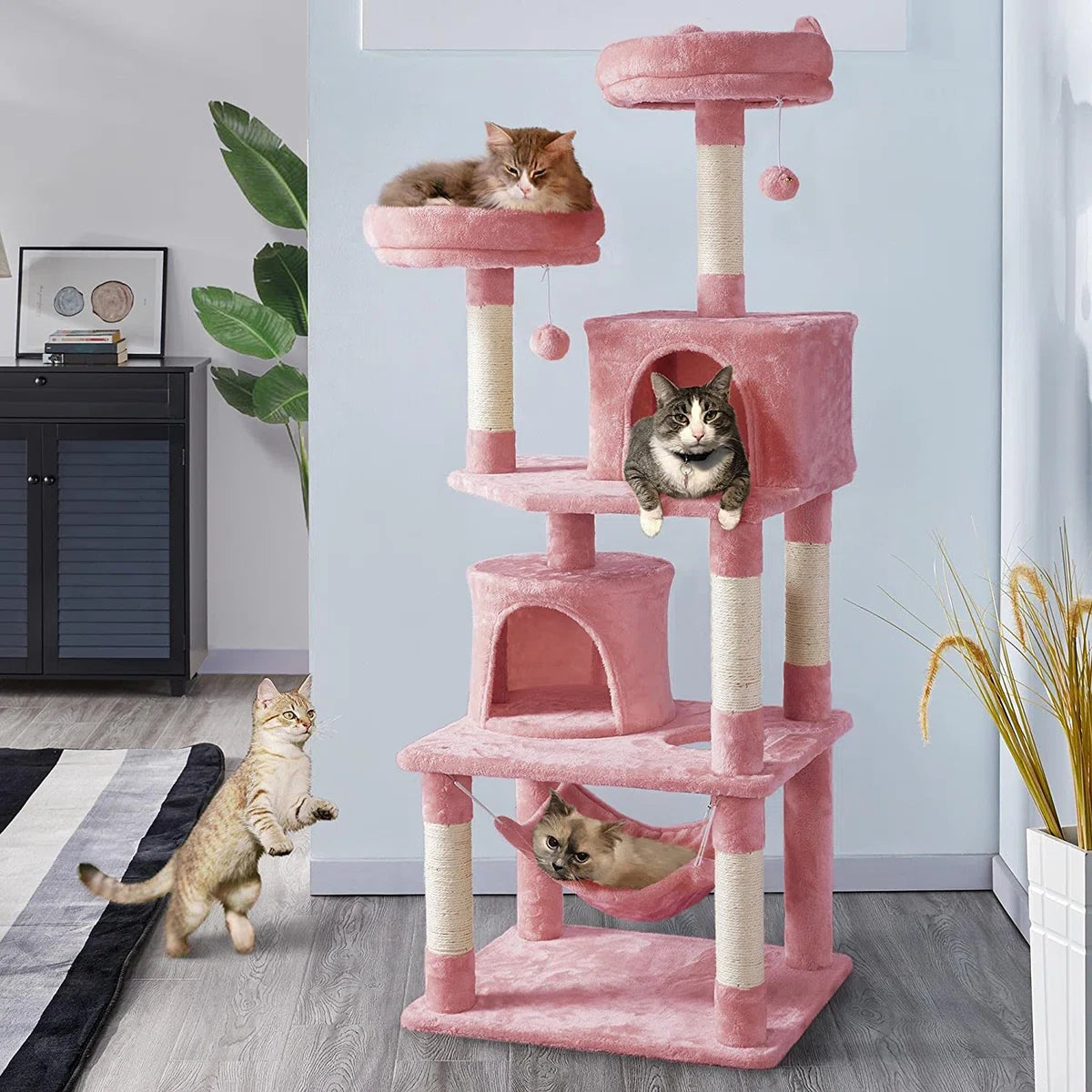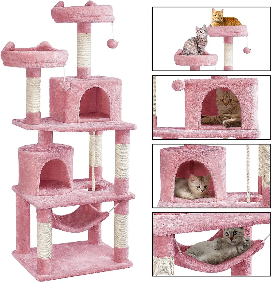 - Adorable and comfort: Two beautifully padded seat rods with raised foam edges are the most visited places in the house for your cats. Two fluffy and spacious apartments and soft hammocks offer a range of comfortable lounges and places to relax for discreet furry friends.