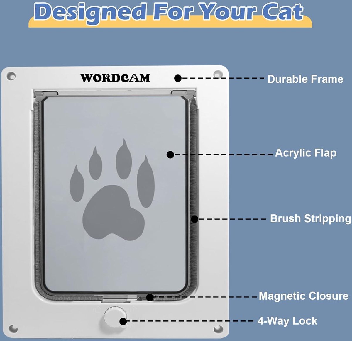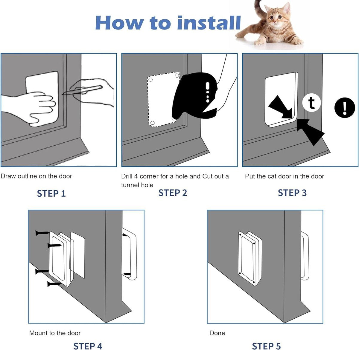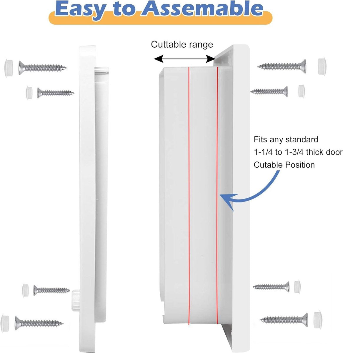 Dit kattenluik is ideaal voor katten tot 25 lbs en past gemakkelijk in houten, PVC, metalen deuren van 1/2 - 2 inch dik. Het wordt geleverd met een snijsjabloon op ware grootte voor een eenvoudige installatie in verschillende soorten deuren, zoals kasten, garages, slaapkamers en meer.