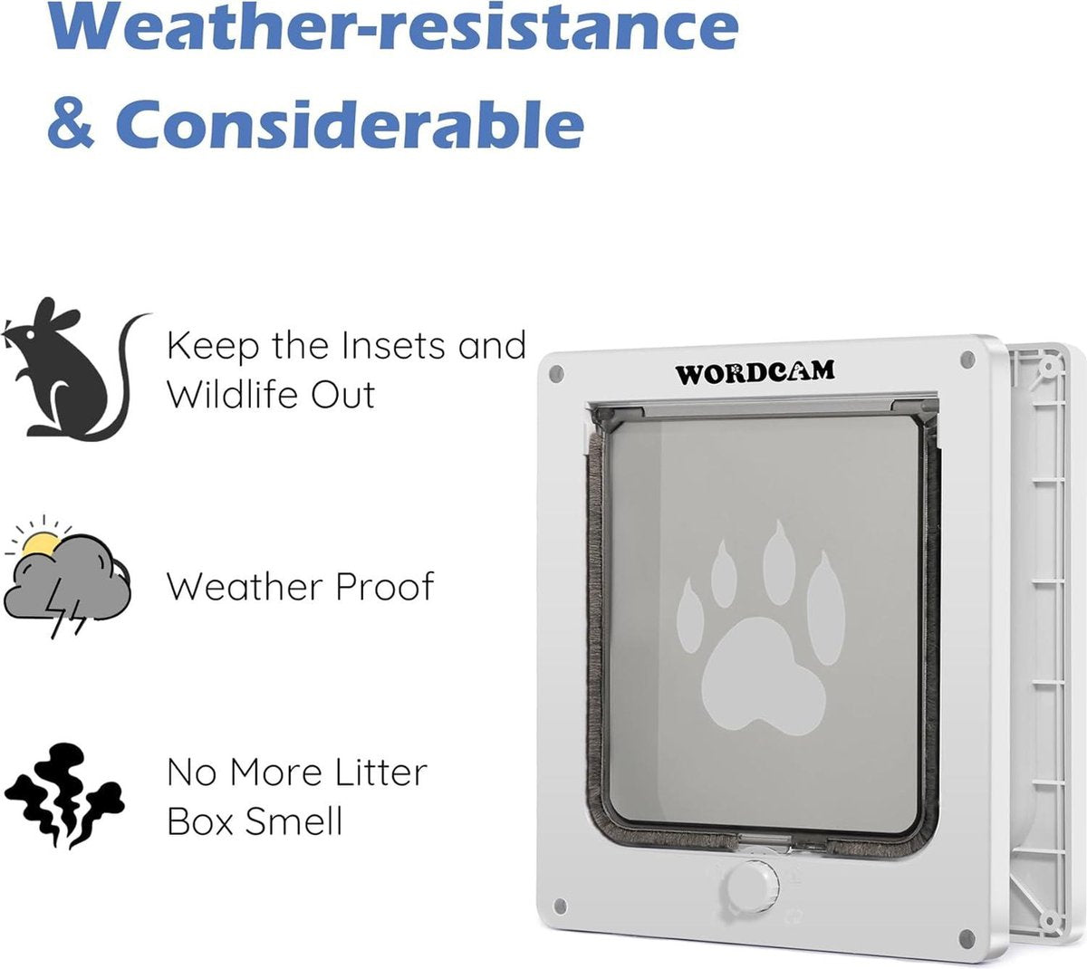Kattenluik - Grote kattendeurklep - Dikke kattendeur voor binnen- en buitendeuren - 4-voudige vergrendeling - Huisdieren binnenshuis - Maximaal 20 lbs - Eenvoudige installatie - Weerbestendig (wit)