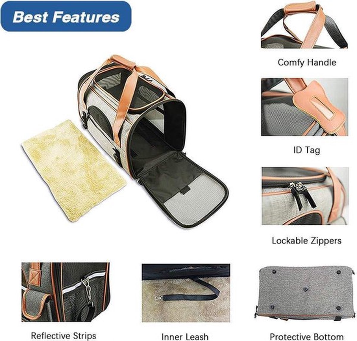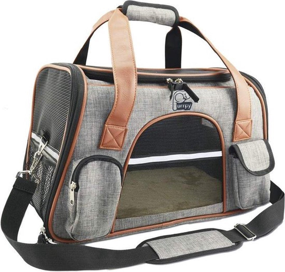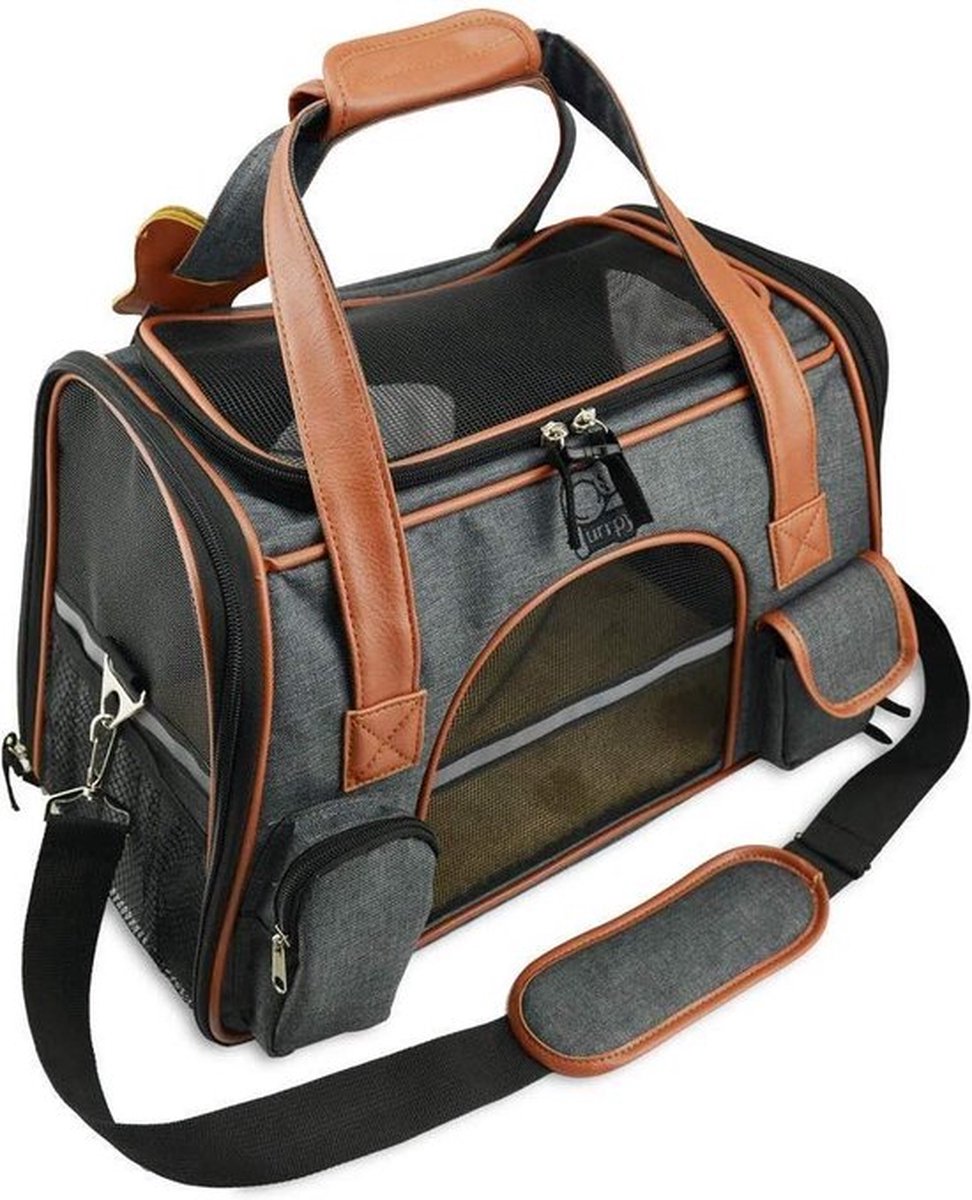 Nette en stevige Rexa® tas voor uw hond of kat. De tas heeft een drie-voudige opening voor uw huisdier en aparte vakjes voor accessoires.