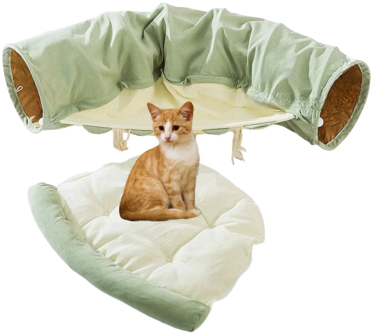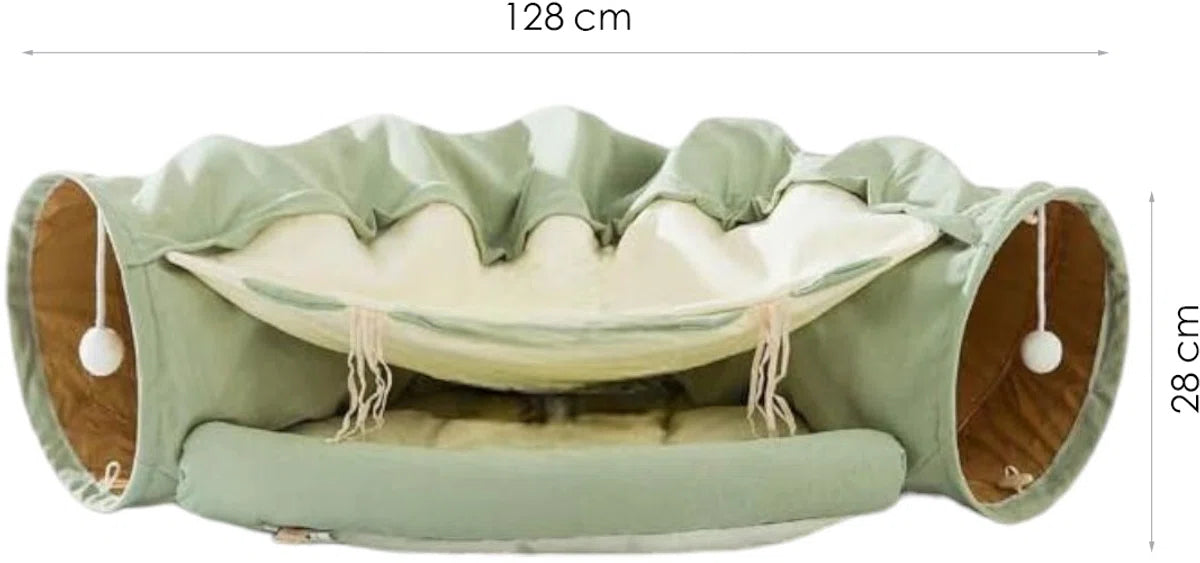 • Urenlang Speelplezier: Laat je kat haar innerlijke avonturier ontdekken terwijl ze door de tunnel sprint, kruipt en verkent. Met zijn uitnodigende structuur en speelse ontwerp zal onze kattentunnel je huisdier urenlang vermaken, waardoor verveling tot het verleden behoort. Laat je kat genieten van haar eigen speeltuin, terwijl jij ontspannen toekijkt.