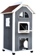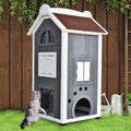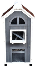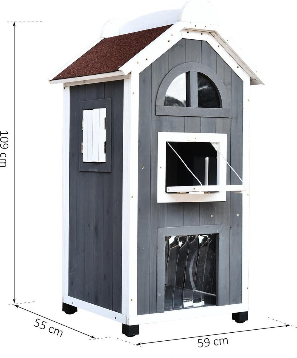 Kattenvilla met trap en balkon - Kattenhuis - Kattenhok - 2 verdiepingen - 59 x 55 x 109 cm- Hout - Grijs