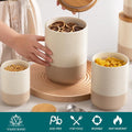 Keramische voorraadbakken met luchtdichte deksels, voorraadbakken 2400 ml/1250 ml/600 ml, duurzame keukenbewaarbakken voor koffie, suiker, thee, ontbijtgranen, meel, specerijen, beige