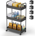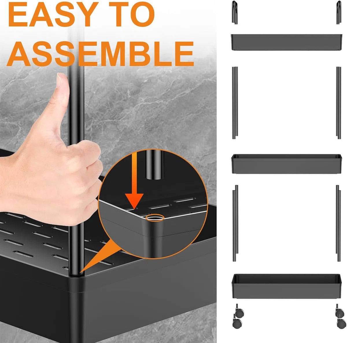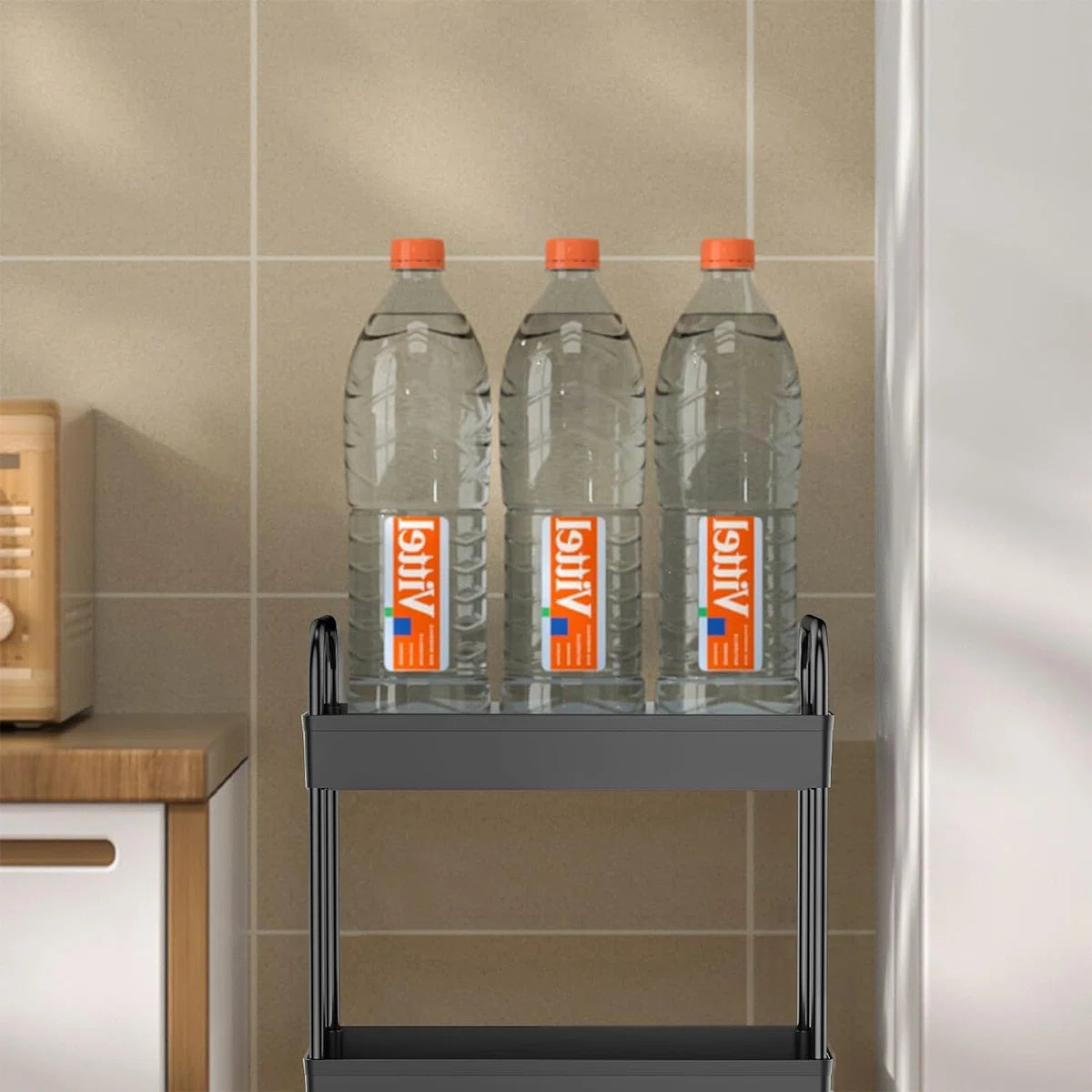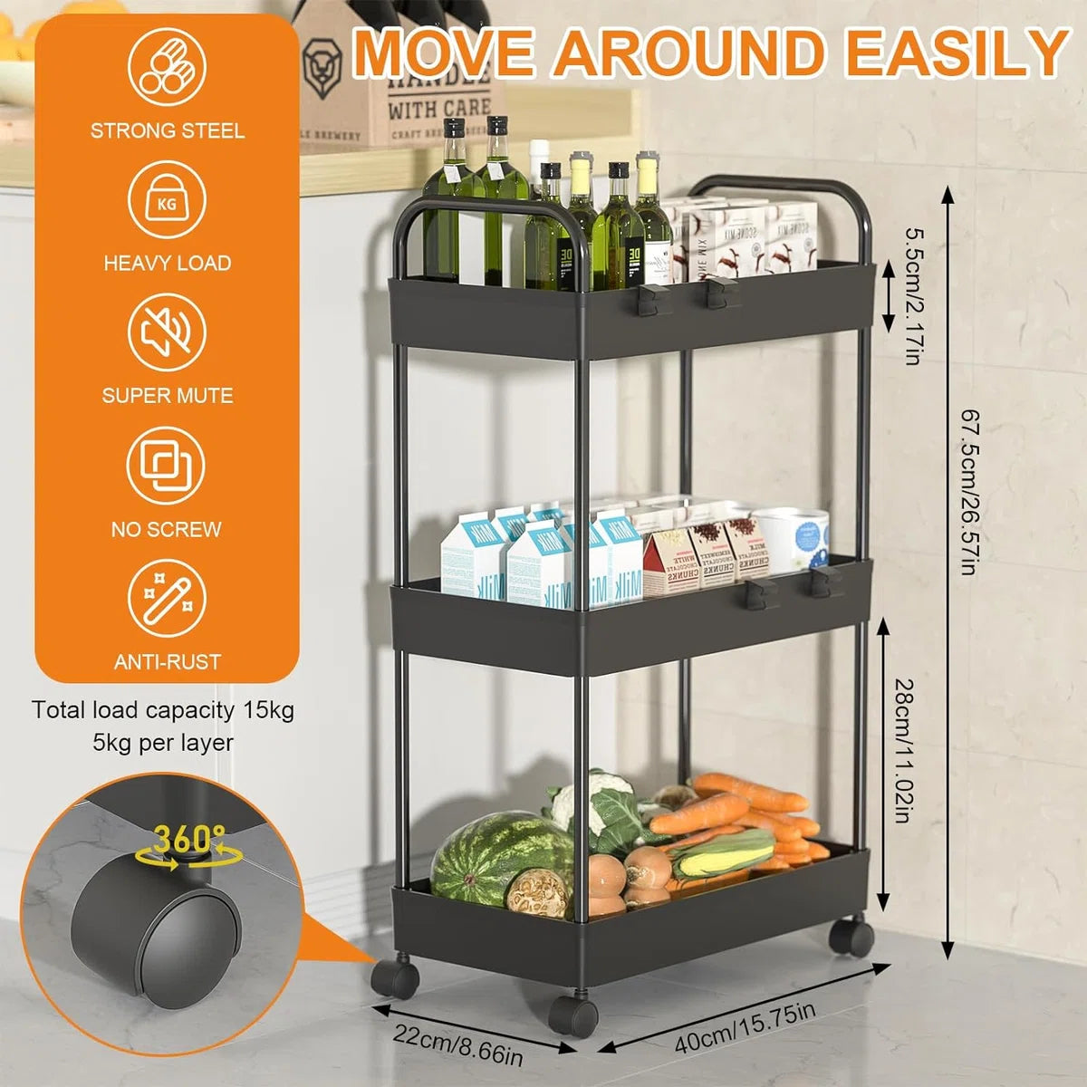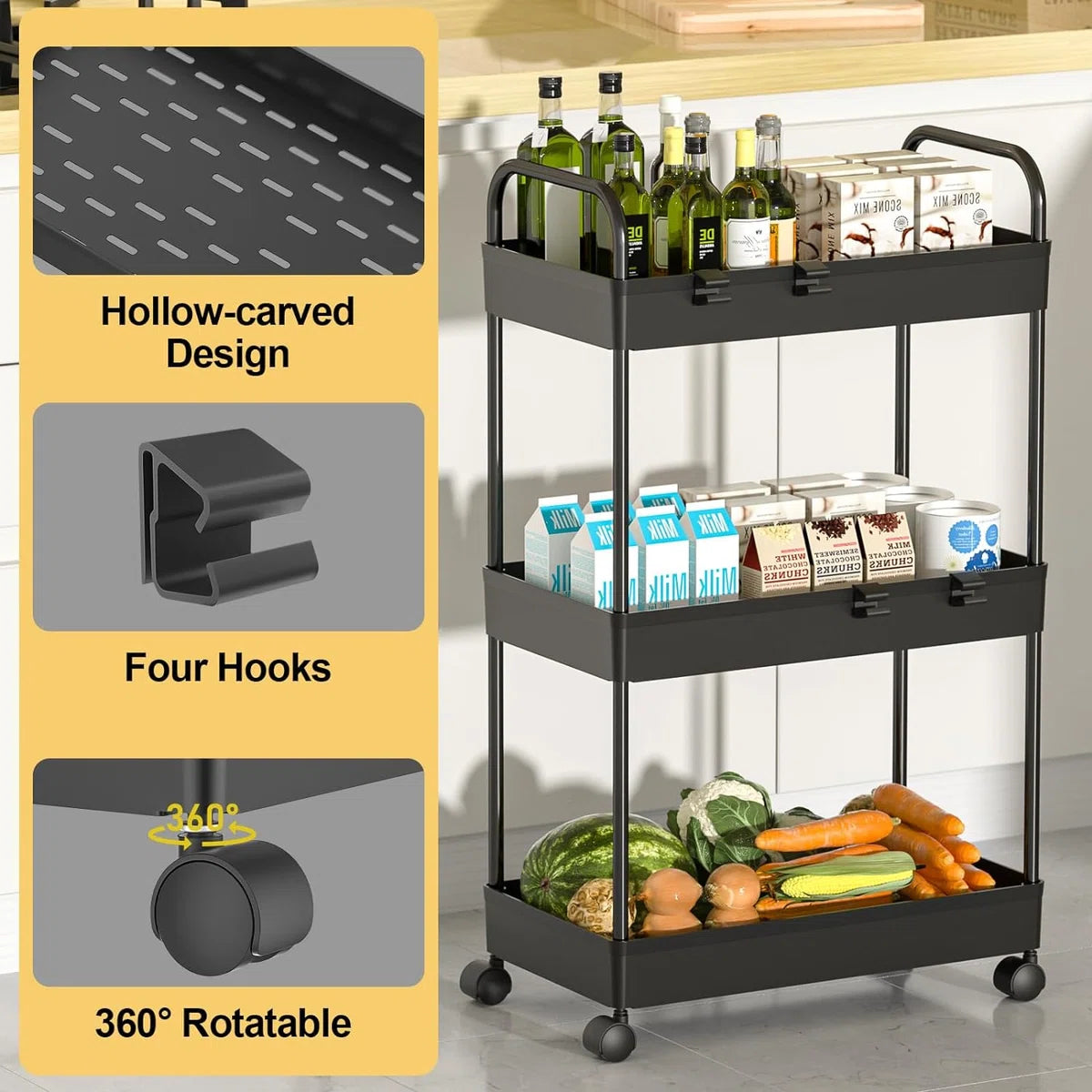 keukenwagen met 3 niveaus, serveerwagen, opbergwagen, beweegbare snackwagen, badkamerwagen, multifunctionele trolley met handvat, haken, rolwagen, nisrek op wielen, voor keuken, slaapkamer,