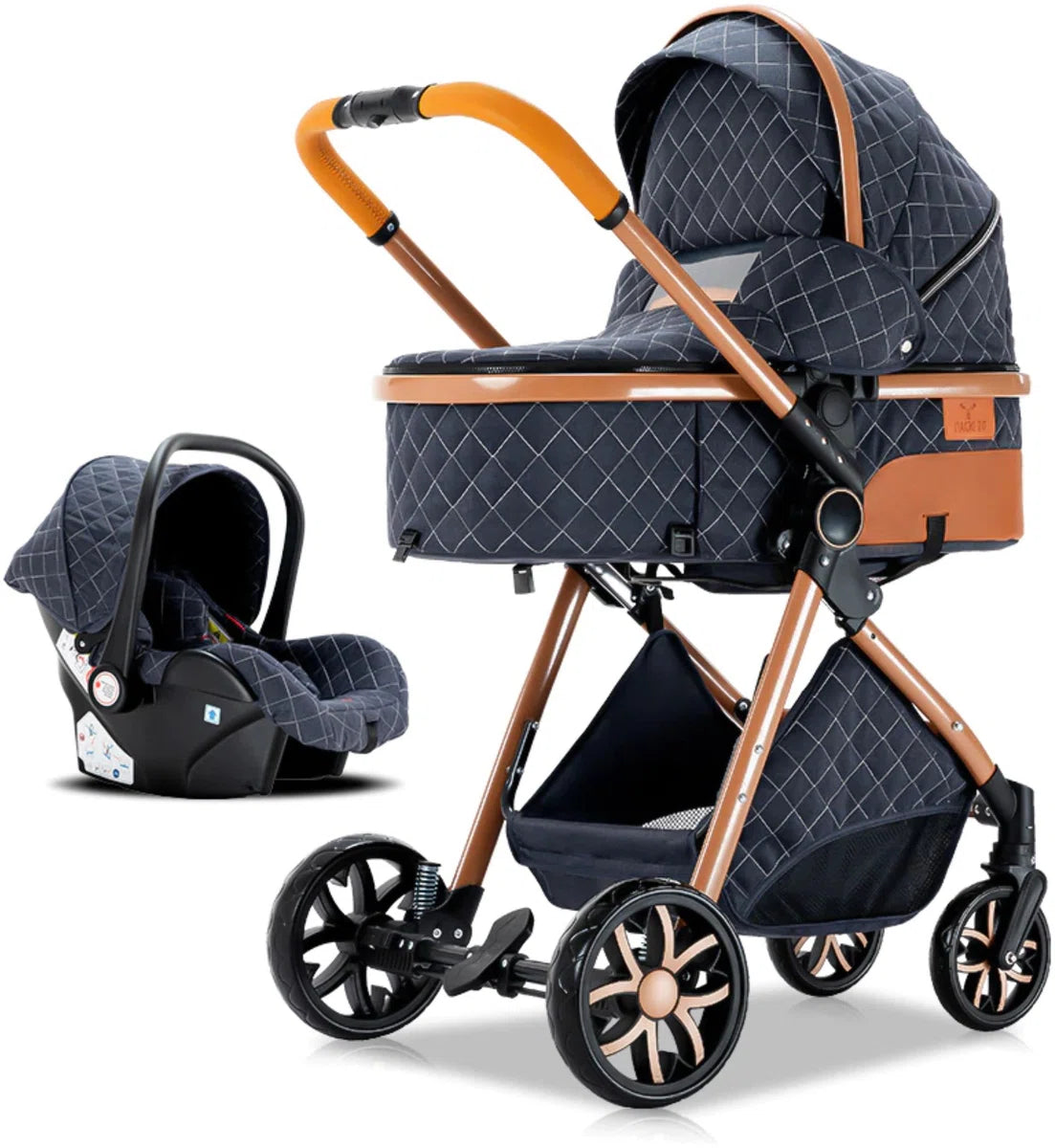 Kinderwagen 3-in-1 – Luxe kinderwagen - Buggy – Wandelwagen - Multifunctioneel – opklapbaar – Incl autostoel – Blauw