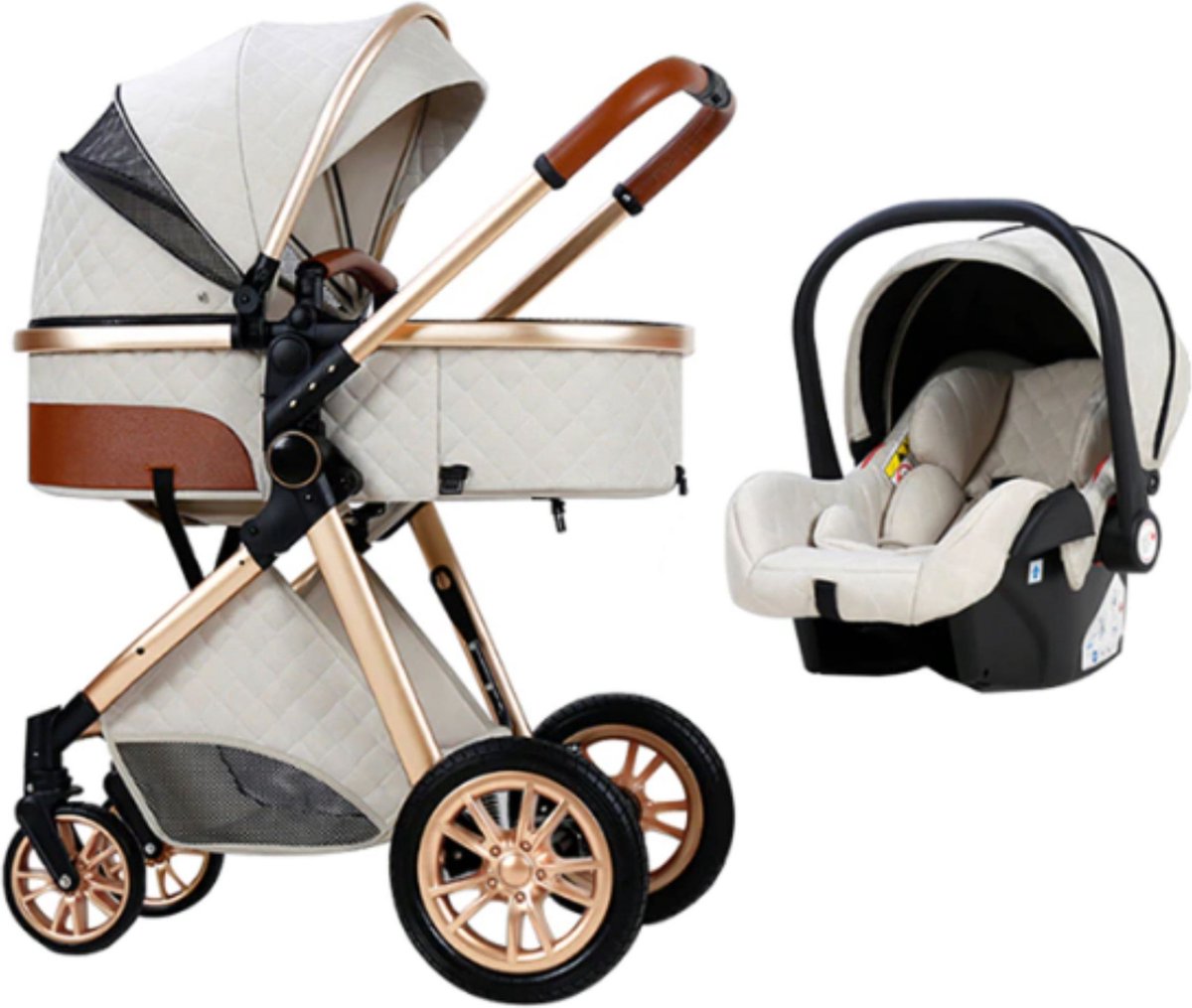 Kinderwagen 3-in-1 – Luxe kinderwagen - Buggy – Wandelwagen - Multifunctioneel – opklapbaar – Incl autostoel – Wit