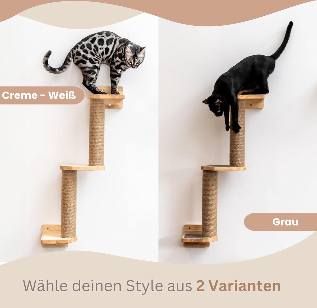 Klimwand voor katten - massief hout en jute - krabpaal muur - krabplank - kattentrap - kattenwand - wandkrabpaal - kattenmeubel - 3 opbouwopties - grijs