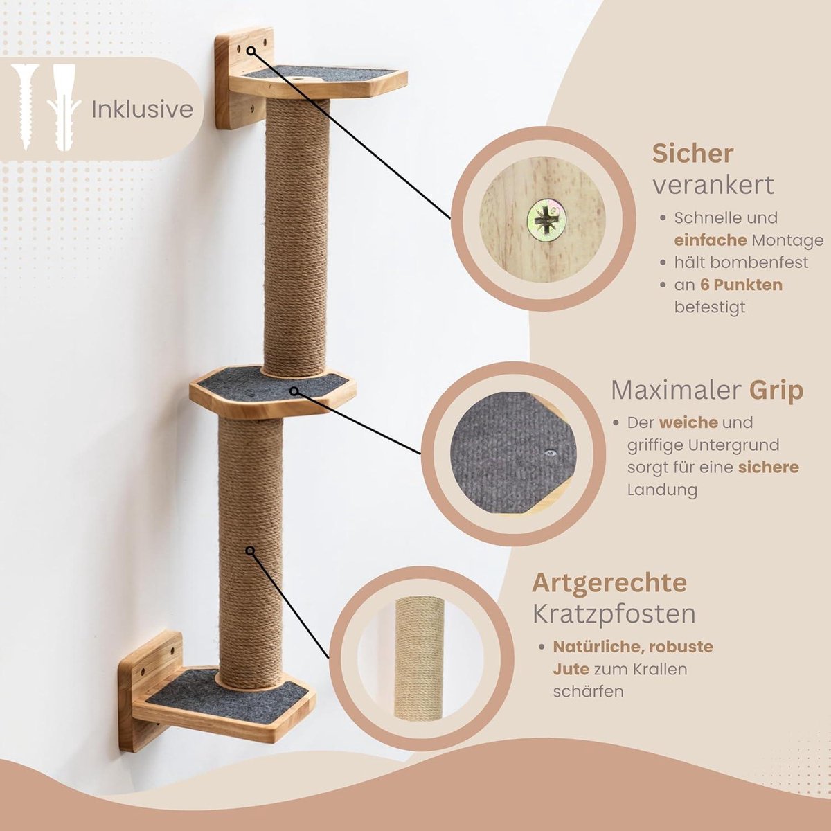 • Actief en gezond: Katten klimmen van nature graag in hoogte, en met de wandkrabpaal kunnen ze dit op een veilige en leuke manier doen.