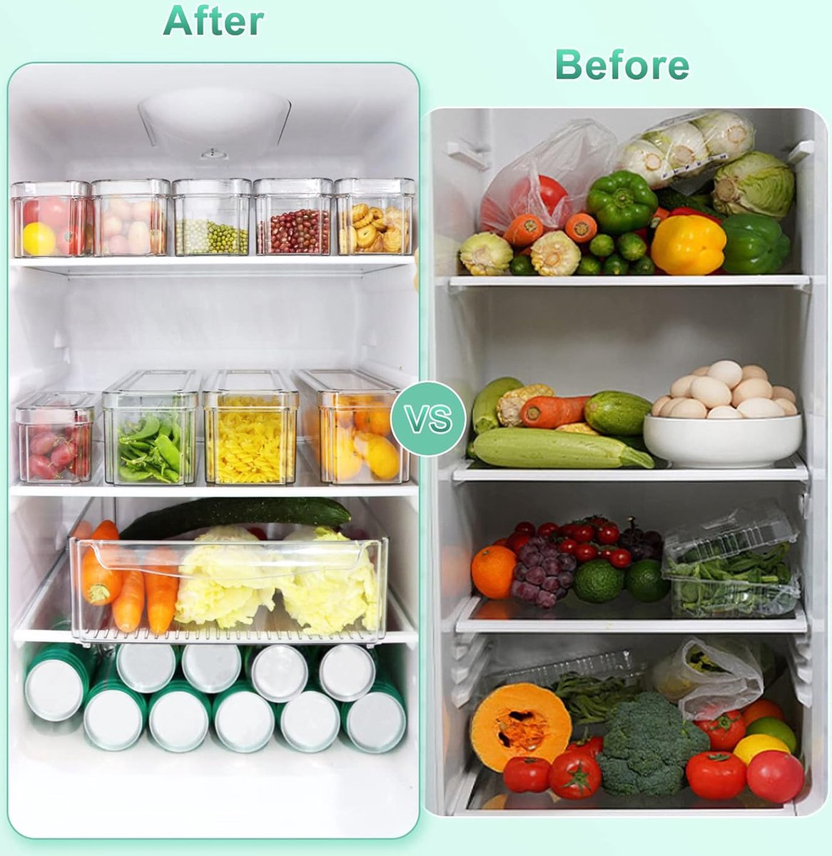 • Fridge Storage Box with Lid: Each transparent fridge organizer comes with an exclusive lid, which not only prevents food from being crushed when stacking and preserving the integrity and freshness of food, but also maximizes the space in the refrigerator. Always keep your fridge clean and tidy.