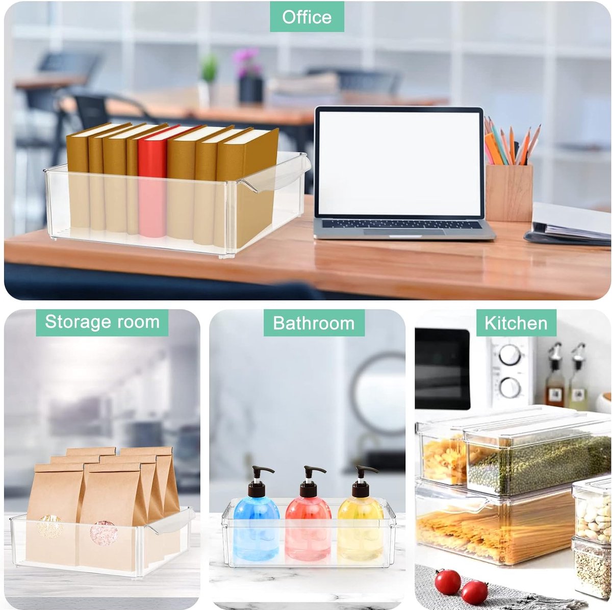 • Multifunctional storage box: these storage boxes can be used in many ways. Not only suitable for storing various items in the fridge or kitchen, fruit, vegetables, drinks, snacks, yogurt etc. but also in the living room, desk, bedroom and closet. Use it to organize makeup, skin care, kitchen supplies, and medicine in one place. Create a very clean and tidy living environment.