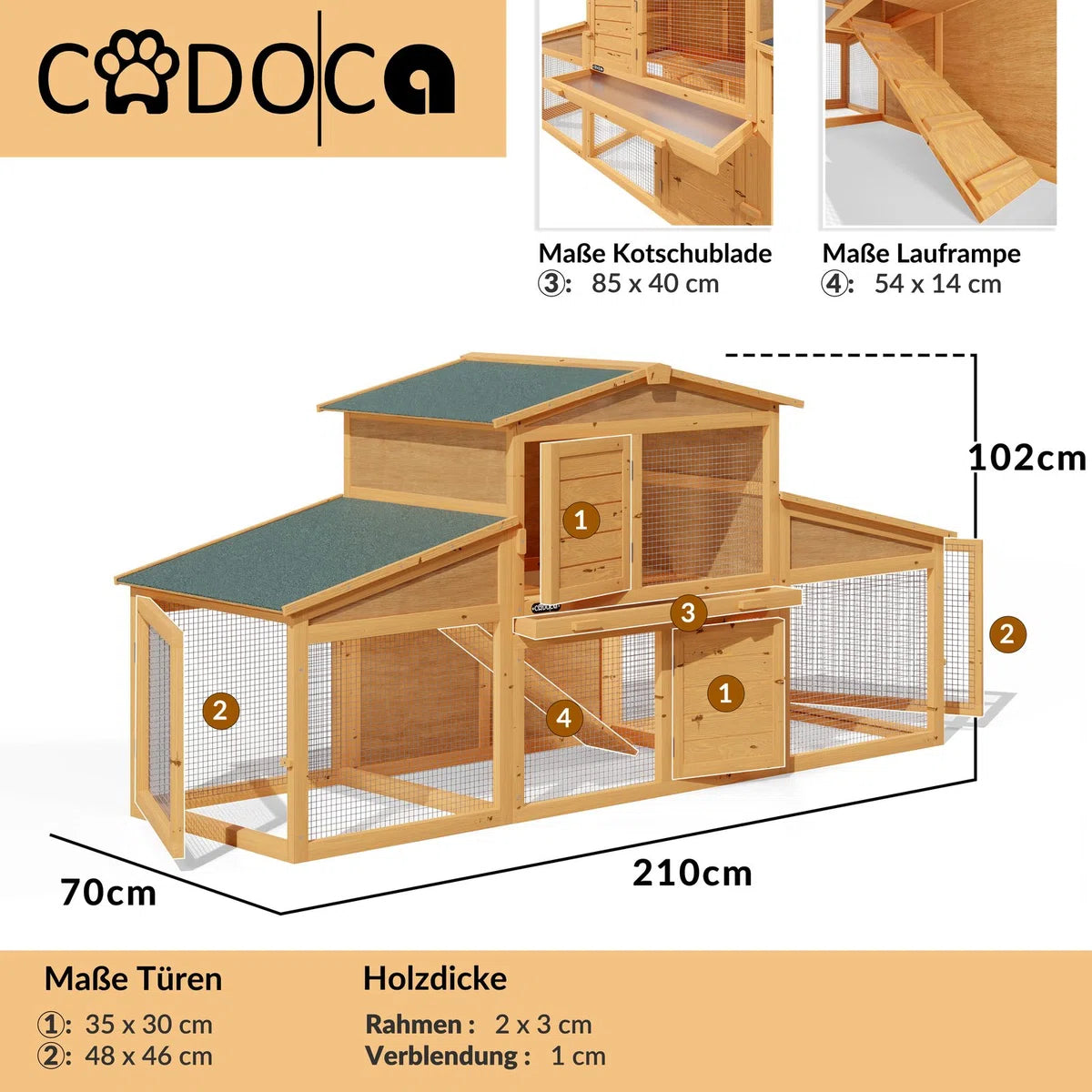 Konijnenhok Amber - Villa - 210 x 71 x 110 cm - Bruin