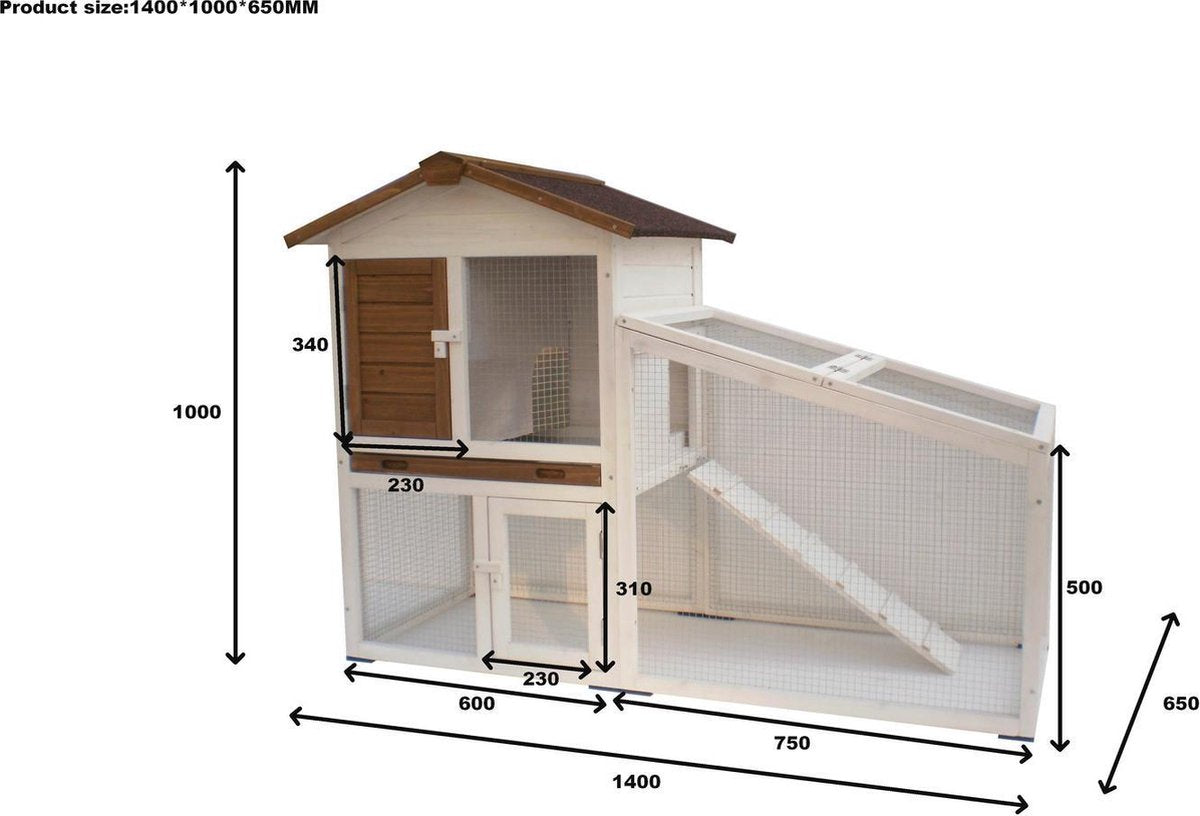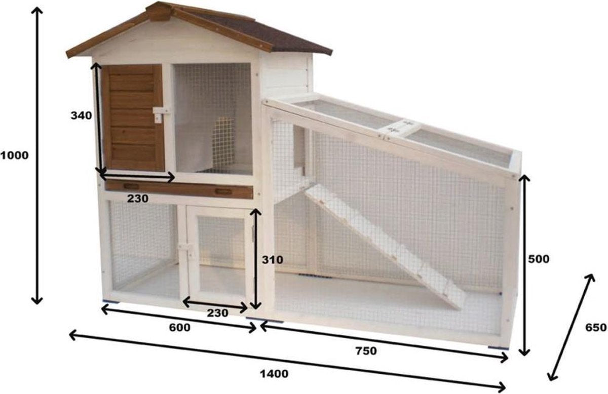 Konijnenhok Tommy - Wit - 140 x 65 x 100 cm
