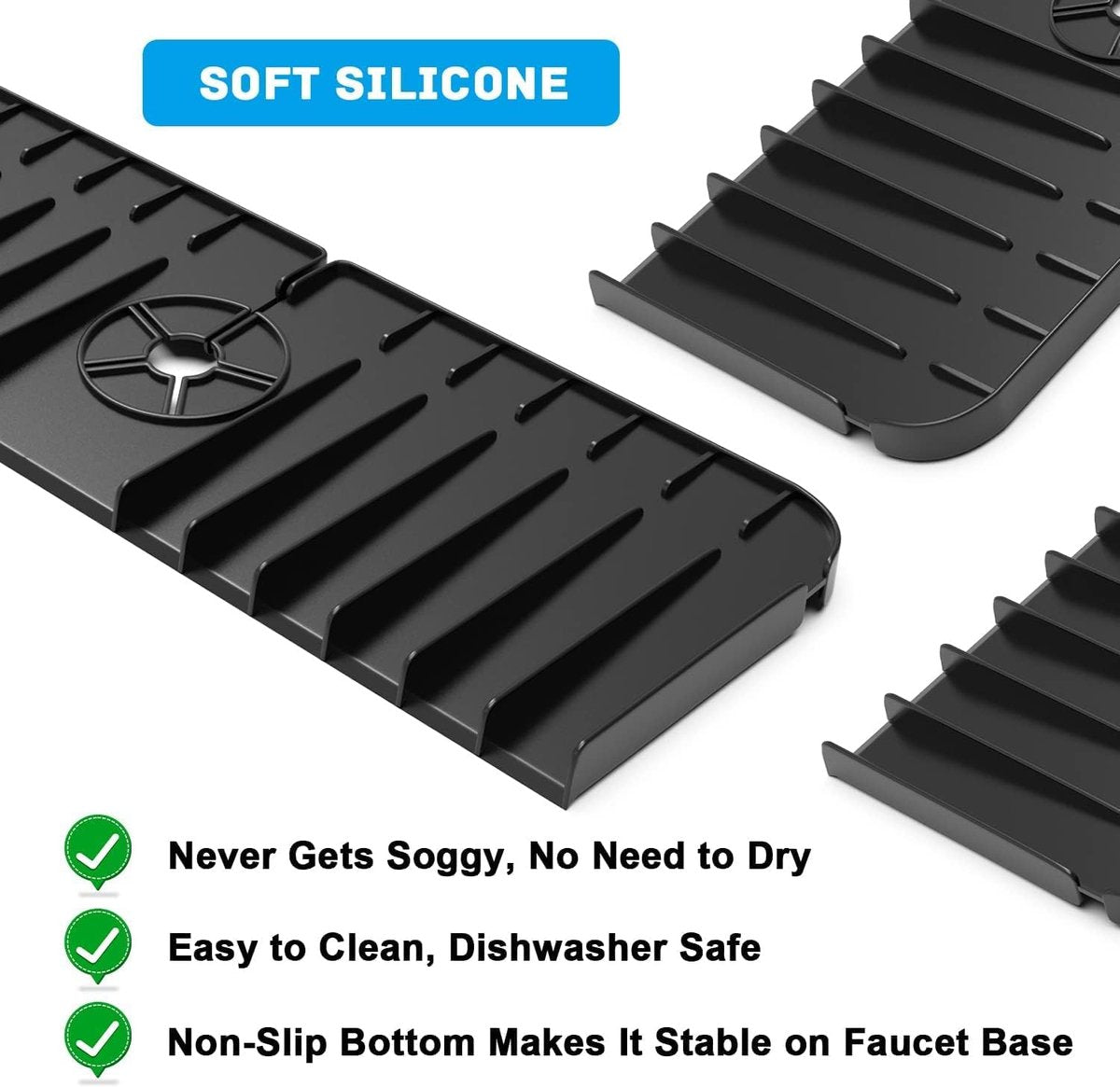 Duurzaam en Stijlvol - Gemaakt van hoogwaardige siliconen, is onze kraanmat niet alleen duurzaam maar ook geurloos en zacht. Het elegante design maakt het een stijlvolle toevoeging aan elke keuken of badkamer, terwijl het functioneel blijft door waterdruppels efficiënt op te vangen.