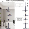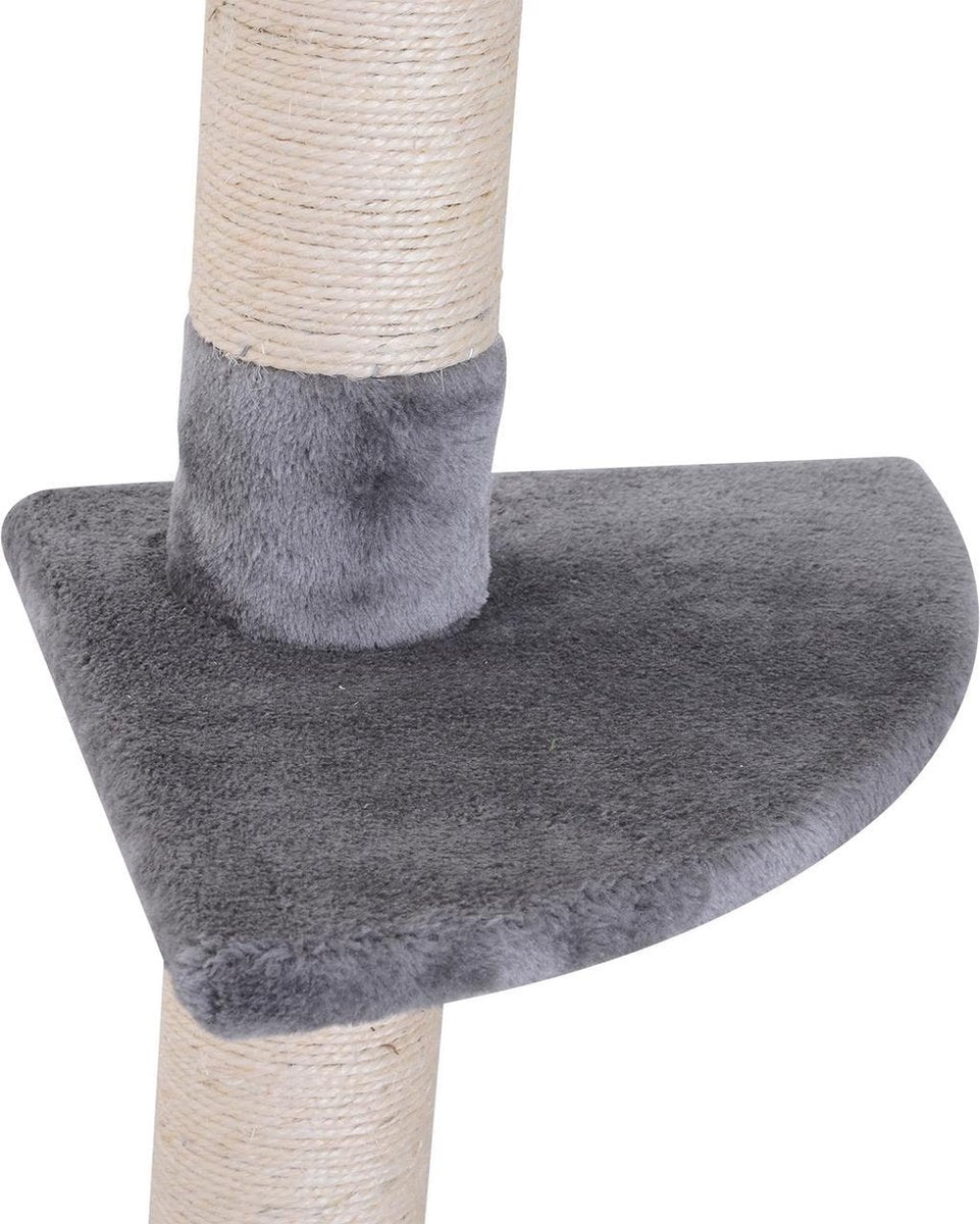 Let op: De krabpaal moet tussen vloer en plafond worden geklemd om stabiliteit te garanderen. Hij is geschikt voor plafonds tot een hoogte van 260 cm.