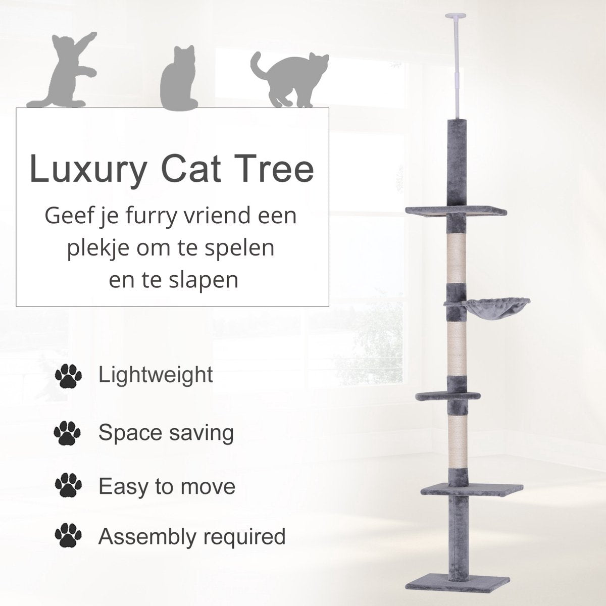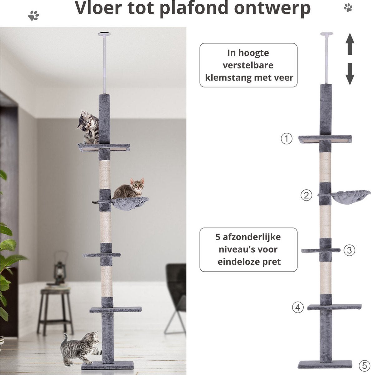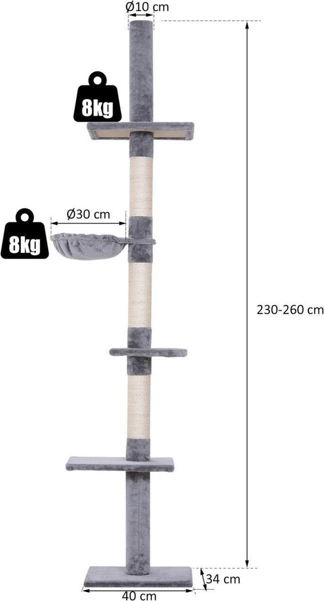 Krabpaal - In hoogte verstelbaar - Kattenkrabpaal - Krabpaal voor katten - Kattenspeeltjes - Katten - Grijs - 40x30x (230–260) cm