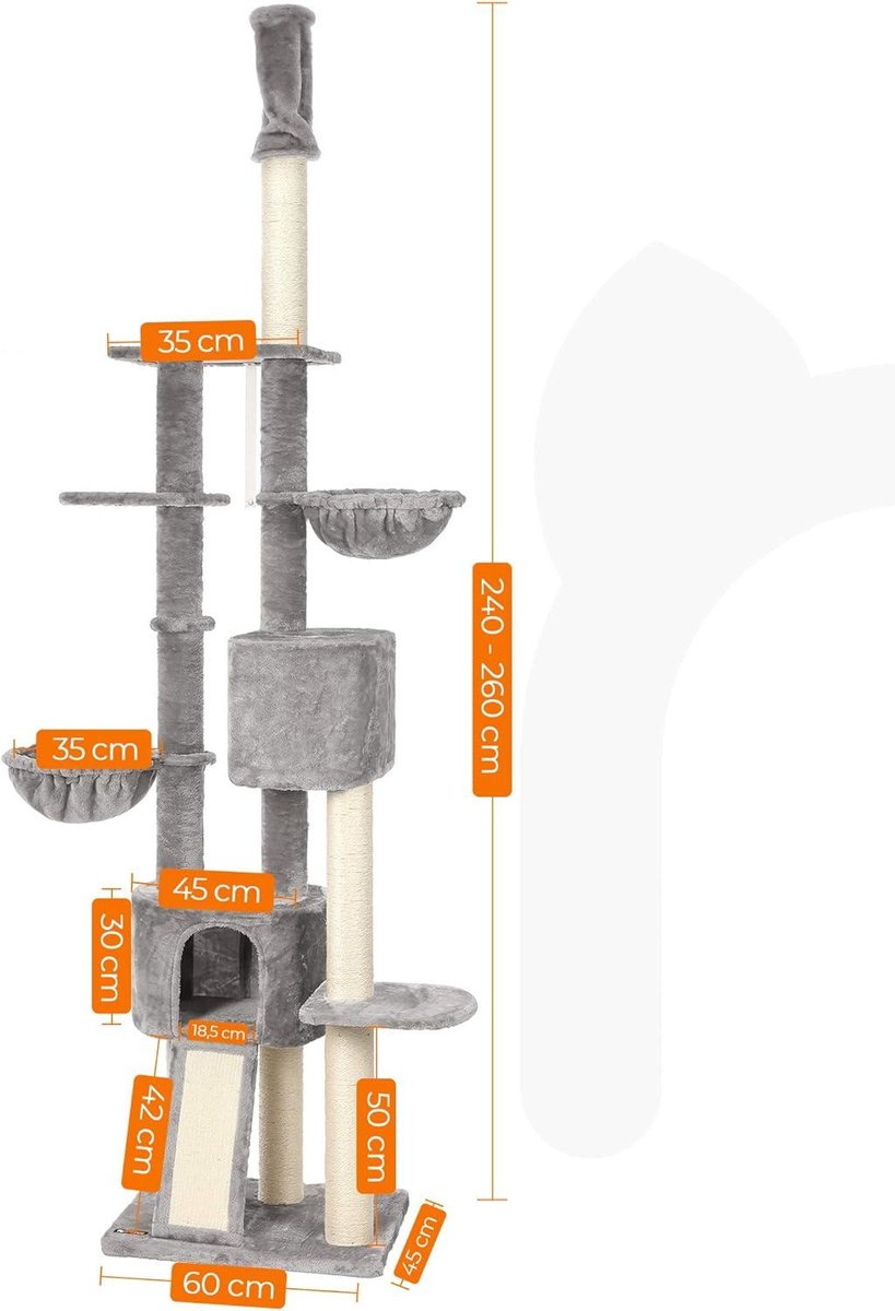 Krabpaal plafond hoog 24-26 m lichtgrijs PCT110W01 voor FEANDREA kat - HTML content nodig Krabpaal