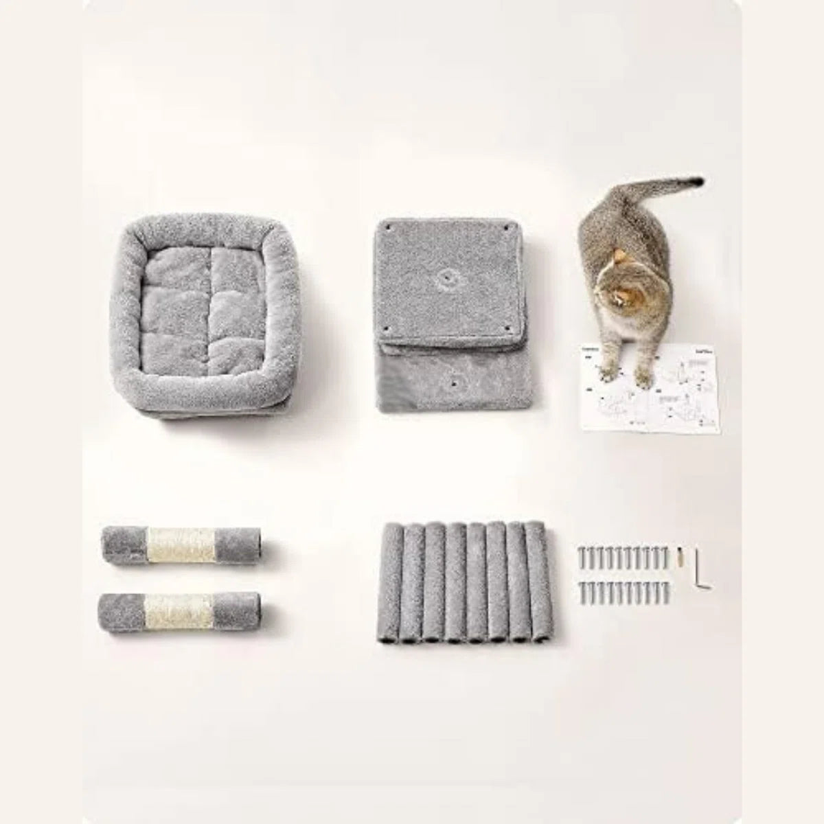 [Klimmen, krabben, ontspannen - alles in één] Het ontwerp met meerdere niveaus maakt het gemakkelijk om aan en uit te stappen. 2 sisalstammen bevredigen het natuurlijke krabinstinct van je harige vrienden. Het platform bovenaan is ideaal om te observeren. 2 grotten zijn comfortabel om te ontspannen