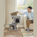 [Stevig, stevig, veilig] Zware spaanplaat voor duurzaamheid, grote basis voor stabiliteit en een anti-tip voor de veiligheid - dit kattenhuis biedt een veilige speelruimte voor je harige vriend