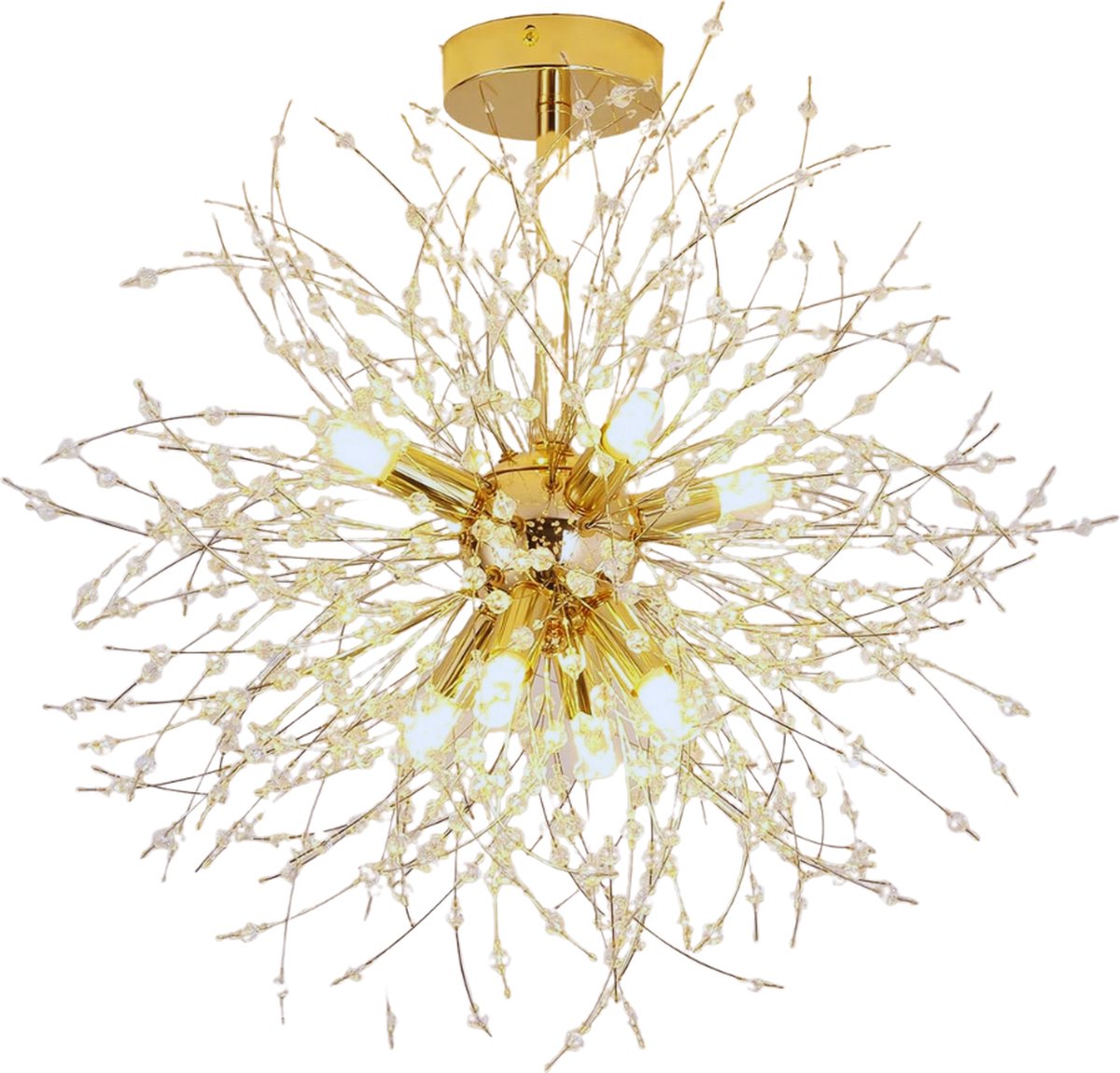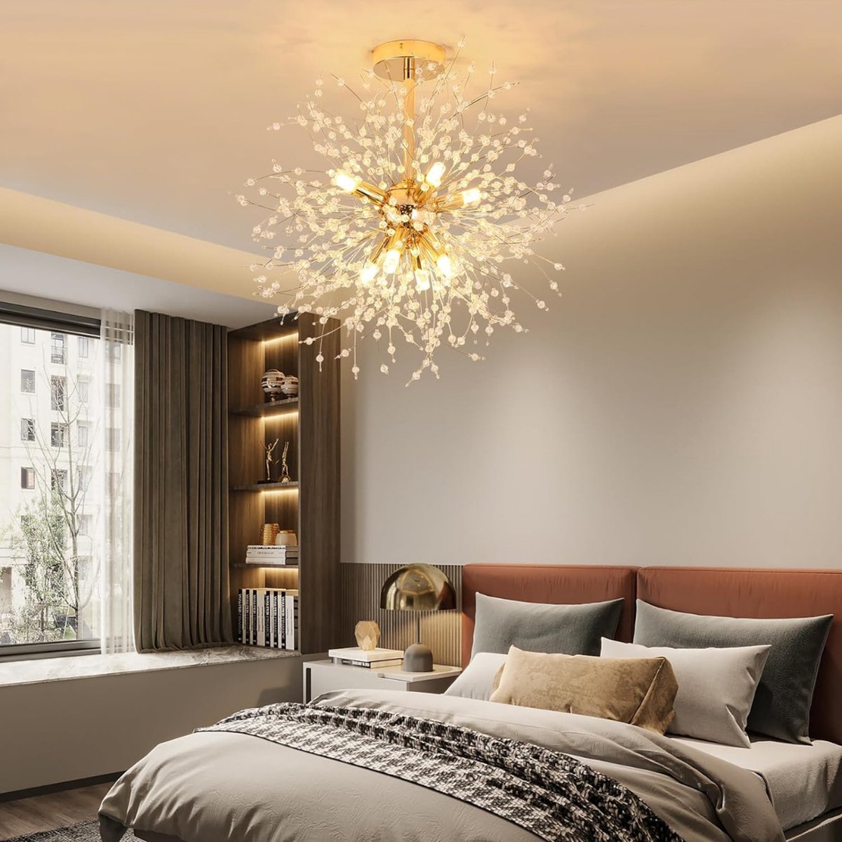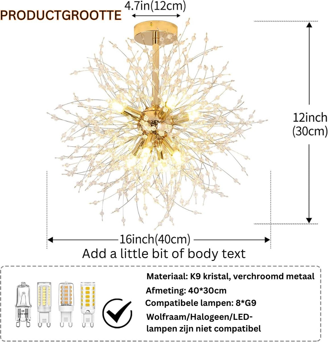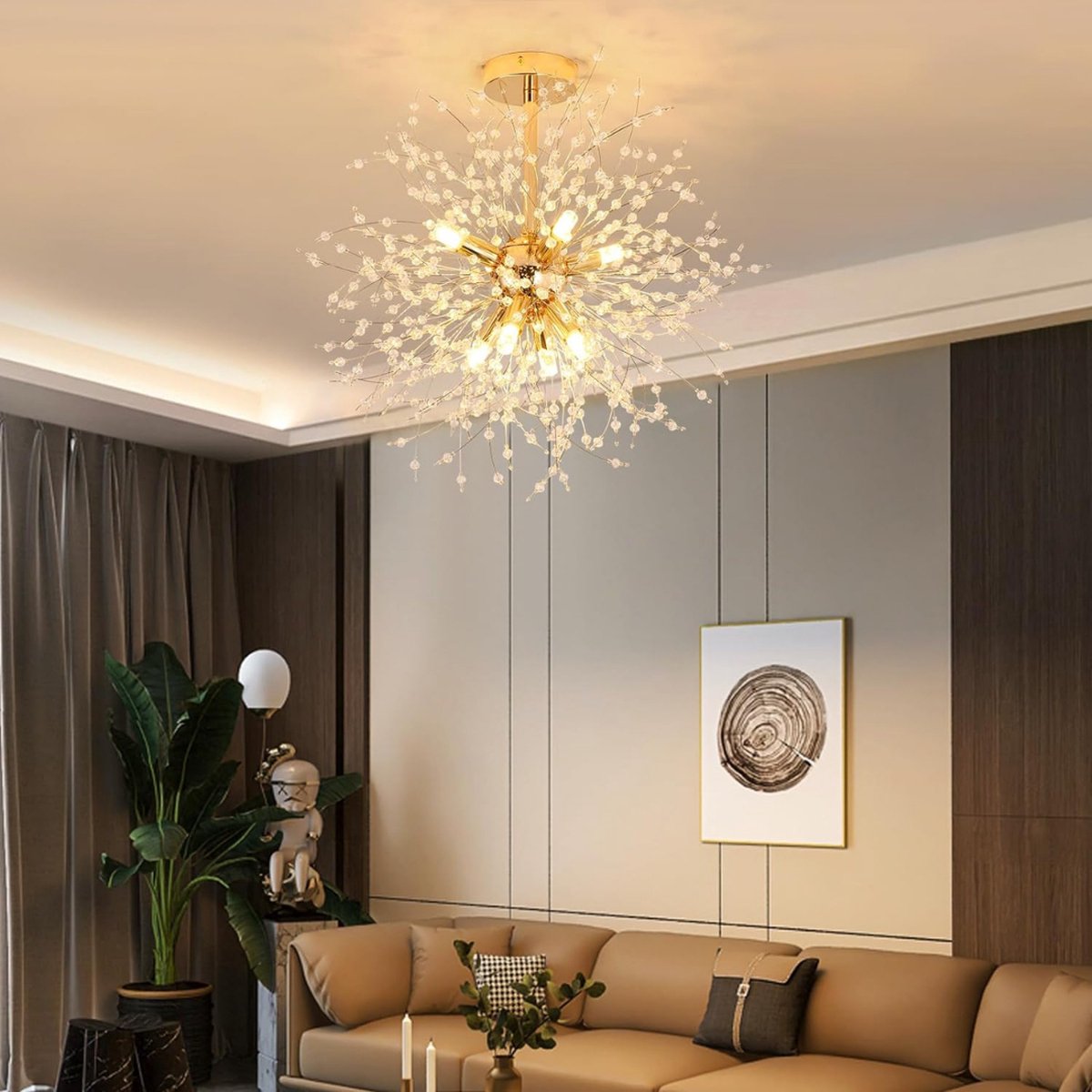 Kristallen Kroonluchter - Goud Kristal Moderne Kroonluchter 8 *G9 Led Plafond Licht Vorm van Vuurwerk, Verchroomde Hanglamp voor Slaapkamer, Woonkamer, Gang (exclusief lampen)