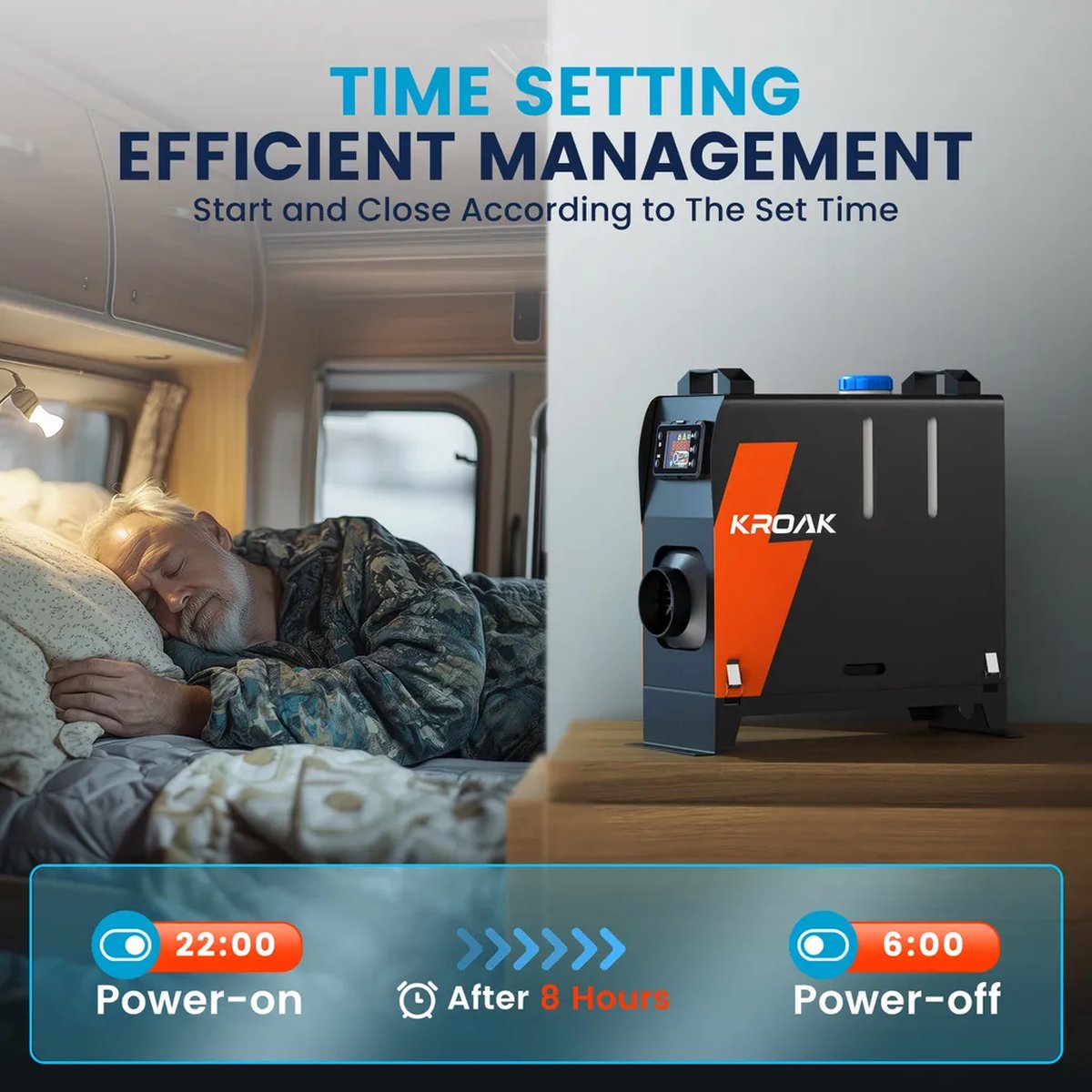 KROAK - Lucht Dieselverwarming Standkachel - 12/24V 5KW Luchtverwarmer - met LCD Display & Afstandsbediening - Zonder bluetooth App Zonder Adapter