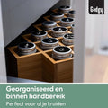 Het bamboe kruidenrek zorgt ervoor dat je al jouw kruiden op één overzichtelijke plek hebt. De luchtdichte schroefdop van de kruidenpotjes zorgt ervoor dat je kruiden langer goed blijven en hun smaak behouden. Plaats het kruidenrek op het aanrecht, in een kast, lade, wandrek of waar je maar wilt.