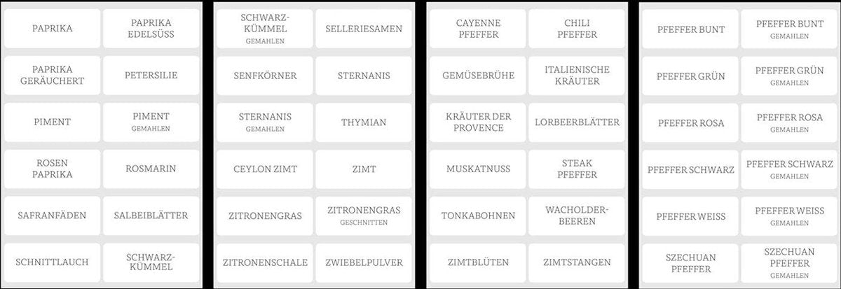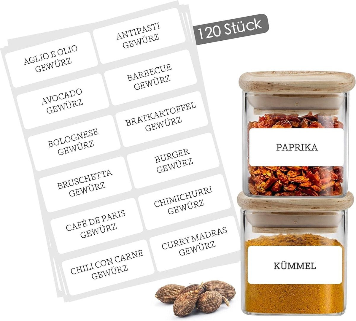 - Bevat 120 etiketten voor de basisuitrusting van kruidenopslag