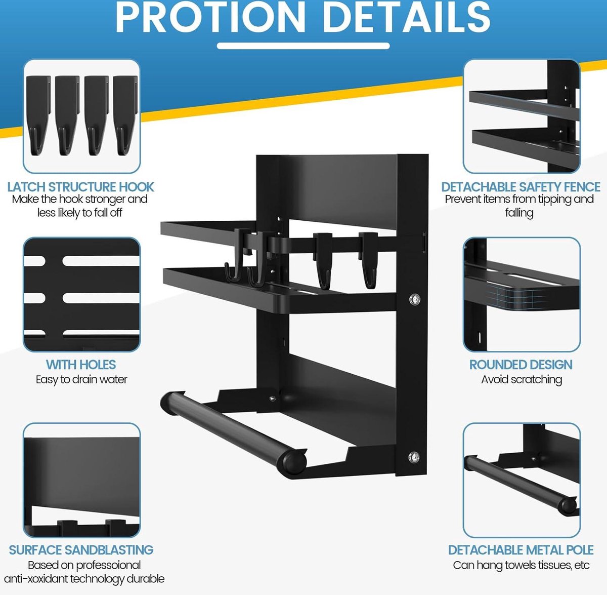 Waarom zou je dit kruidenrek wand- en badkamerrek kopen? Omdat het een moderne en handige oplossing is om ruimte te besparen in je huis. Dit multifunctionele opbergrek kan gebruikt worden in de badkamer, eetkamer, deuren, koelkast en kasten, waardoor je een opgeruimde werkruimte creëert.