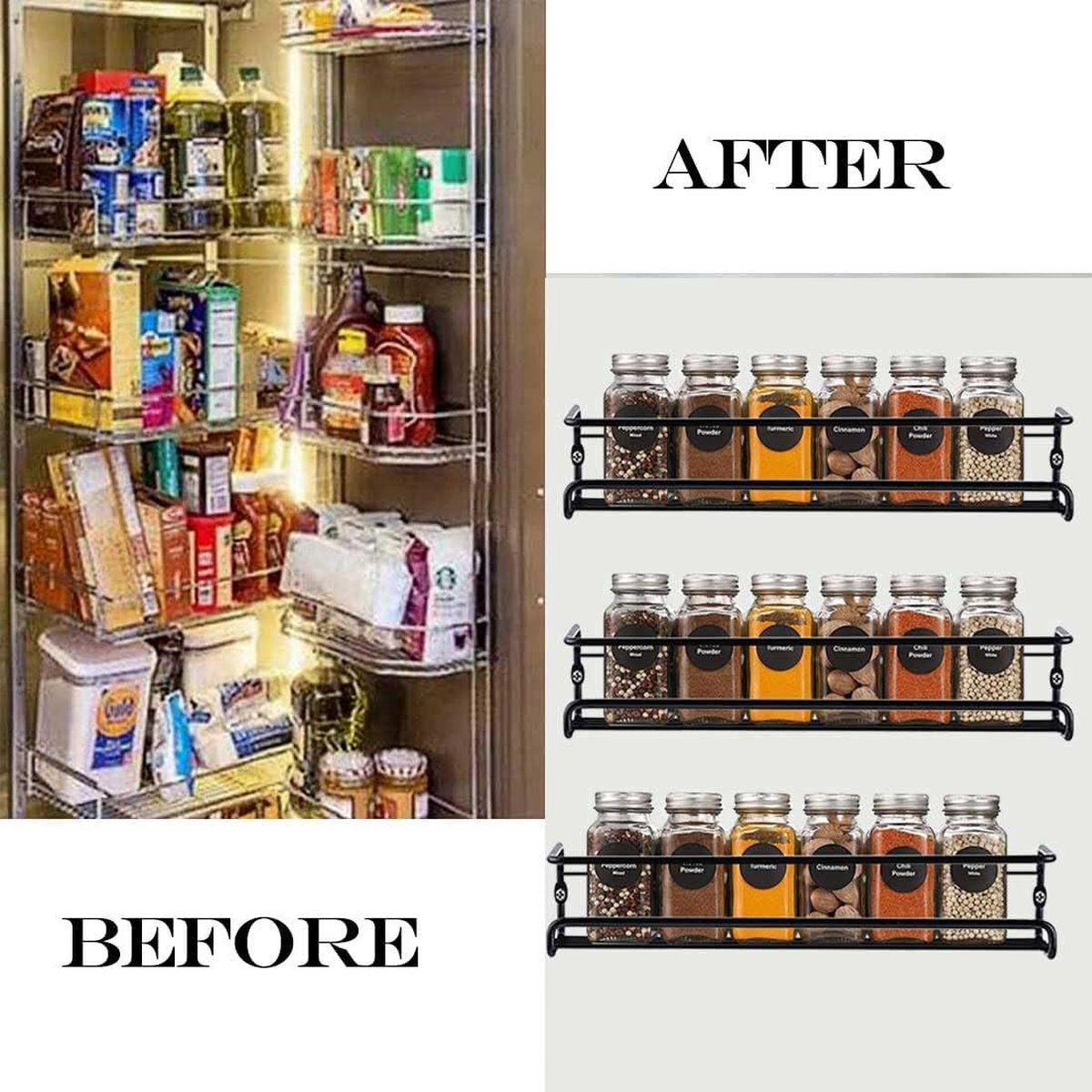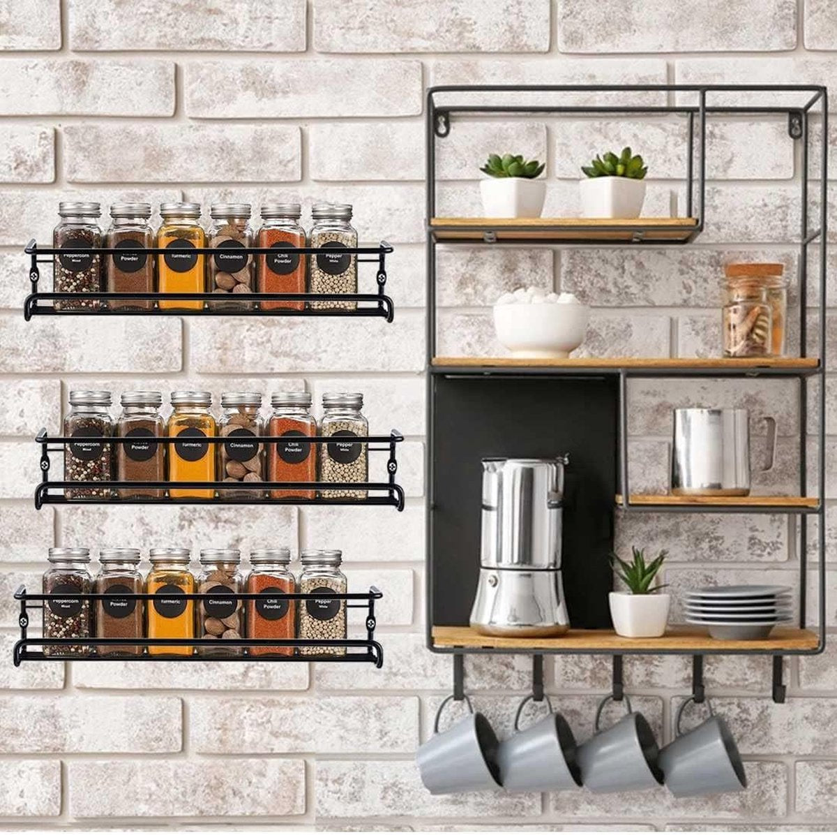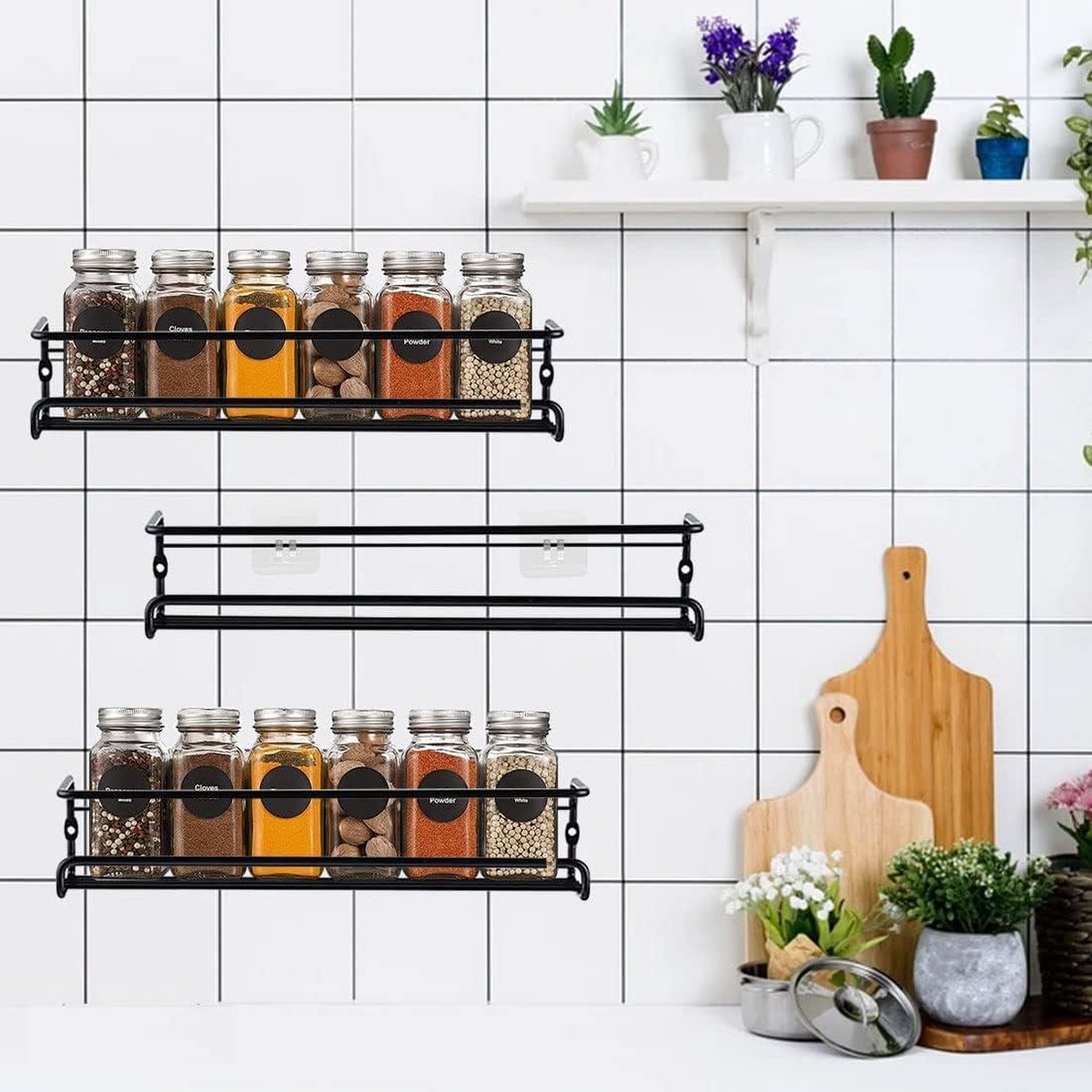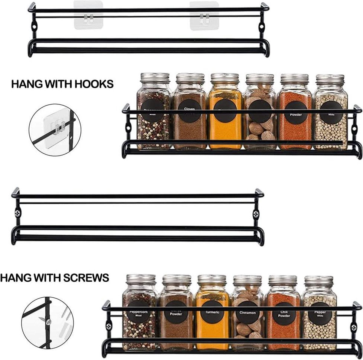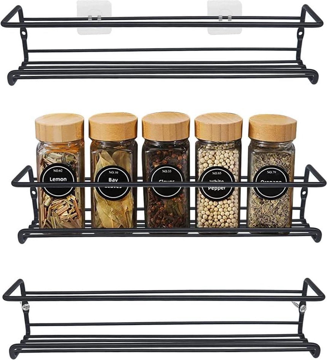 Kruidenrek van metaal zwart - hangend zonder boren - muur keukenrek voor keuken specerijen - 29 x 65 cm kruidenrek ophangbaar