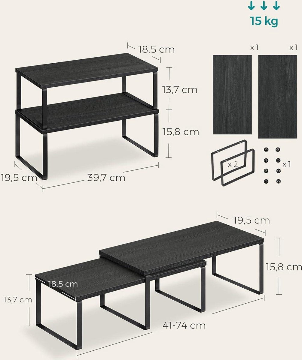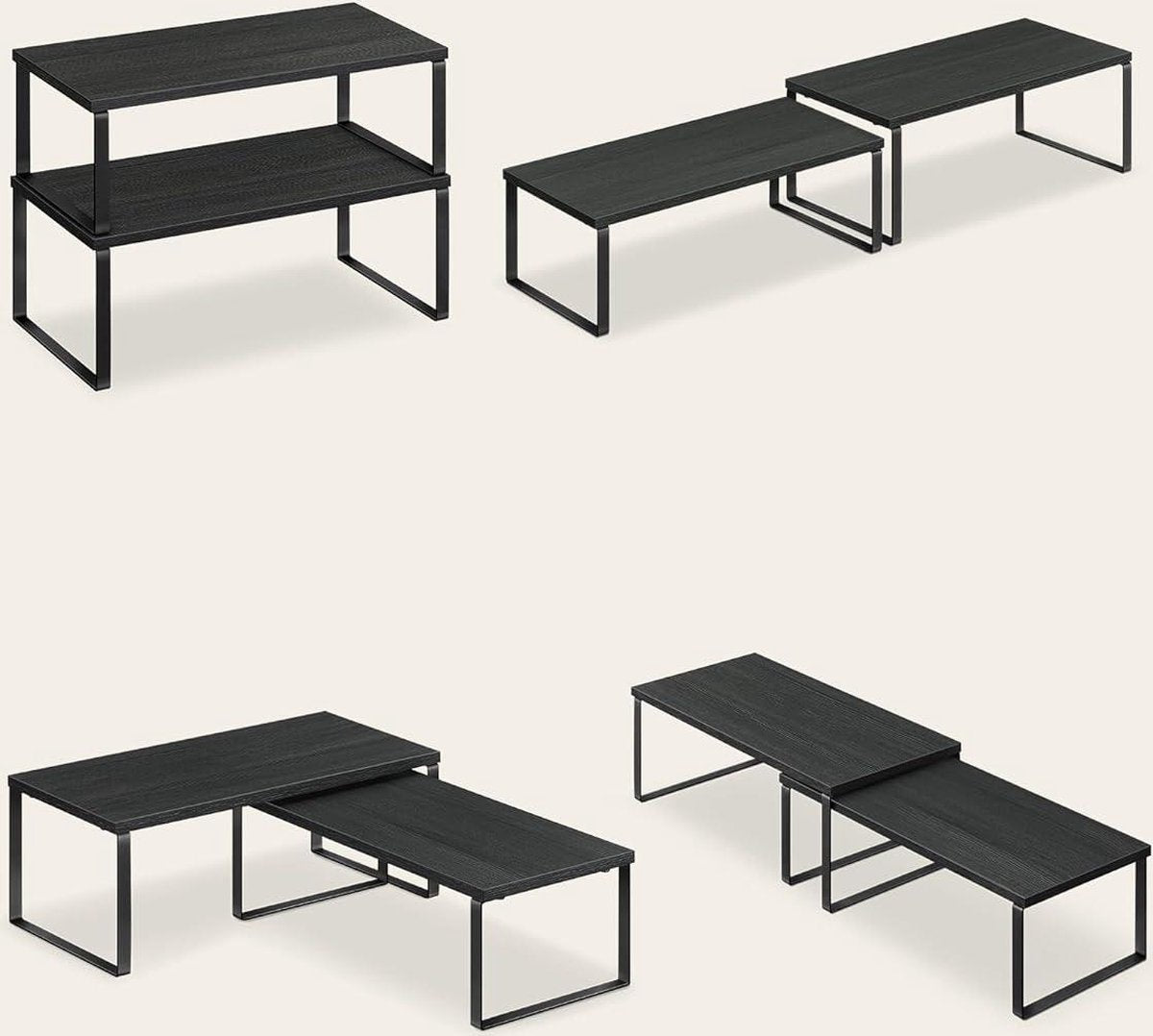 Kruidenrek voor in de keuken - set van 4 - stapelbaar - metaal en hout - inktzwart kruidenrek ophangbaar