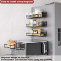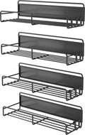 Kruidenrek voor op de koelkast - Set van 4 magnetische kruidenrekken met 10 haken - Ruimtebesparende organizer voor koelkast en magnetron - Zwart kruidenrek ophangbaar