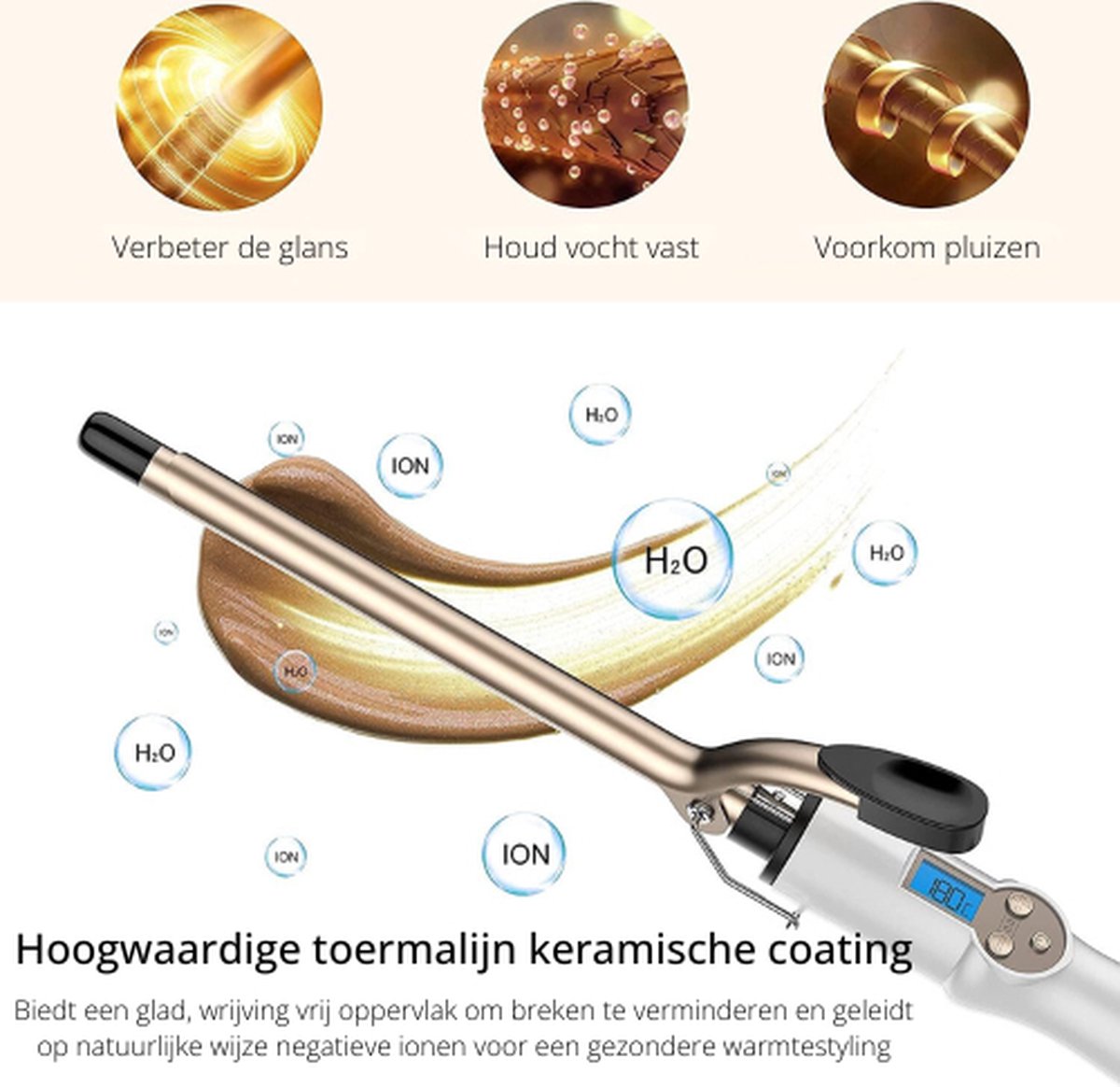 Krultang 13mm - LCD-scherm - Ionische Technologie - Incl. Handschoen/Haarklem - Wit