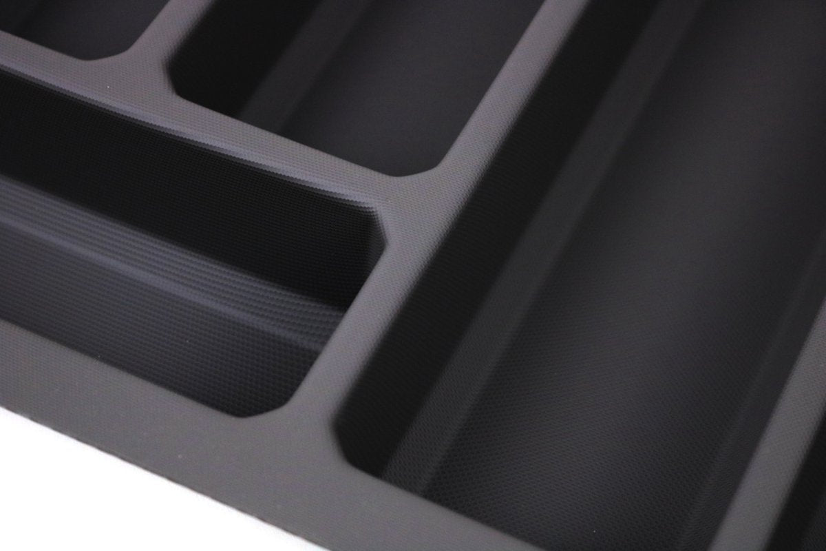 Kunststof bestekbak met antislip, antraciet - Breedte 48.5-53 cm - Diepte 46-53 cm - Besteklade op maat te maken