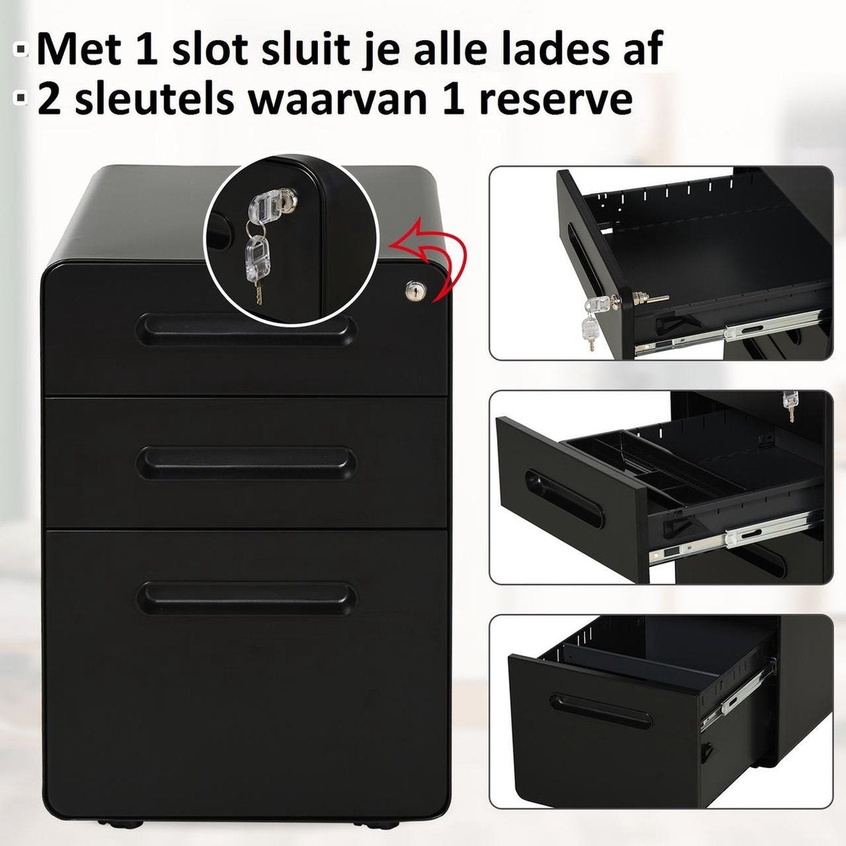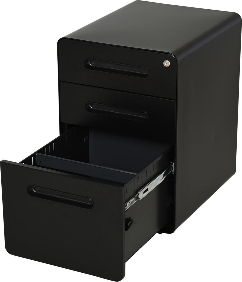 Ladeblok - Ladeblok bureau - bureaukast - Archiefkast - 3 lades - Met slot - Staal - Zwart