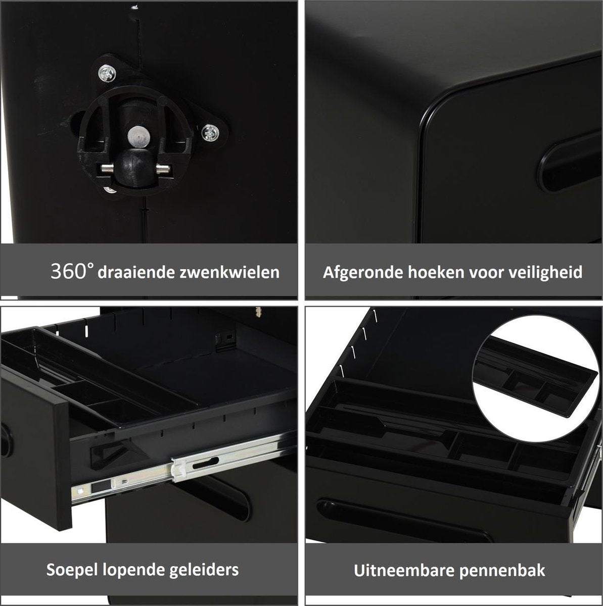 • 4 zwenkwielen voor gemakkelijke verplaatsing