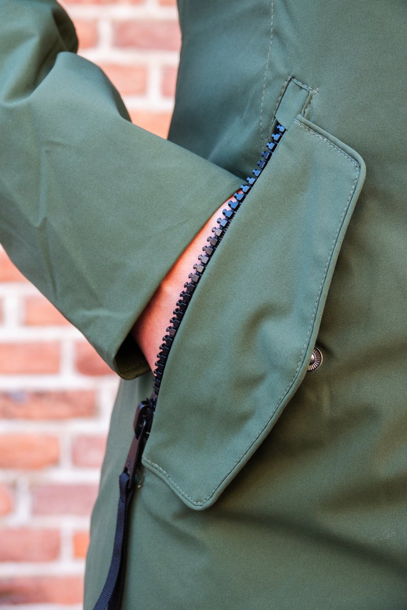 - Bewegingsvrijheid: volledige bewegingsvrijheid door de sterke deelbare rits en twee zijritsen. De middelste rits kan dus van beneden naar boven, wel zo handig op de fiets of als je de auto in wilt stappen.
