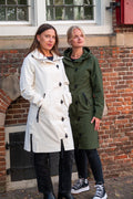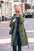 Lange dames tussenjas - Waterafstotend & getailleerd - Legergroen - Maat 36