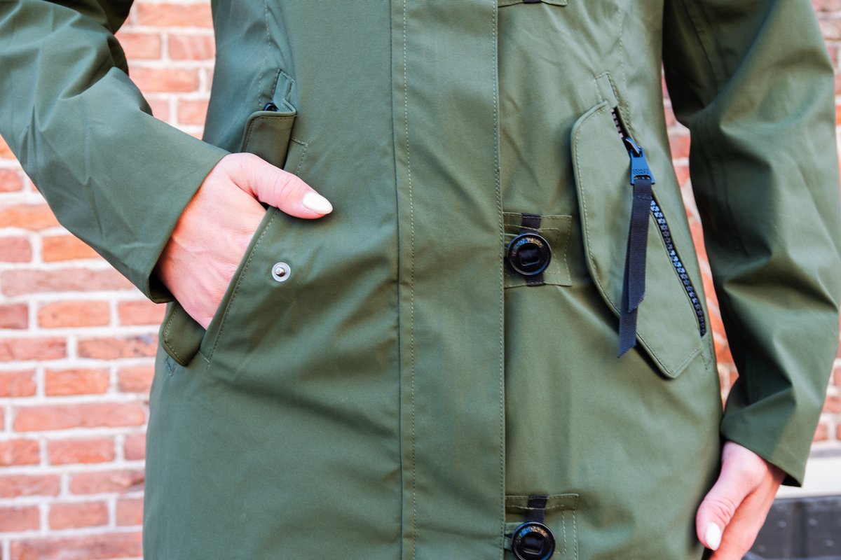 Verstelbare capuchon: je hebt een vast capuchon met een verstelbaar elastiek voor de perfecte fit. Zo blijf je goed droog in een regenbui. - Voorzakken: vier handige zakken die onafhankelijk zijn van elkaar. De diepe ritszakken zijn ideaal voor het warm en droog houden van je handen en de klepzakken zijn handig voor het opbergen van je kleine spullen, zoals je telefoon of sleutels.