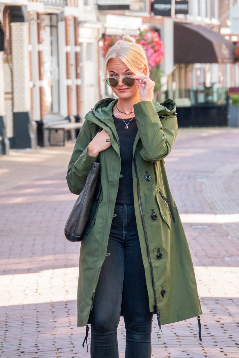 Lange dames tussenjas - Waterafstotend & getailleerd - Legergroen - Maat 38