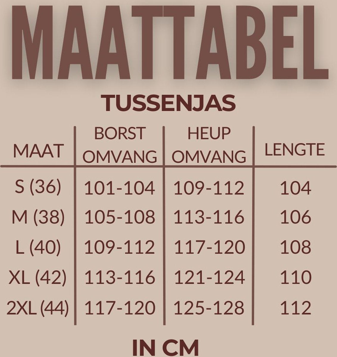 Verkrijgbaar in maat S (36), M (38), L (40), XL (42) en XXL (44). Twijfel je over de maat? Check ons maattabel in de afbeeldingen. Twijfel je nog steeds tussen twee maten? We adviseren je om de grotere maat te nemen. Houd er rekening mee dat het een getailleerd model is. Je kan ons ook altijd mailen om advies te vragen.