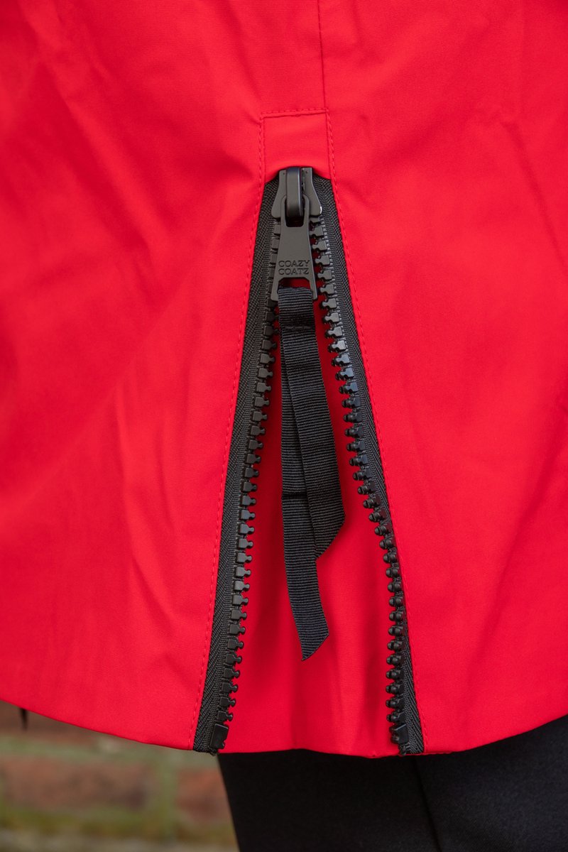 • Bewegingsvrijheid: volledige bewegingsvrijheid door de sterke deelbare rits en twee zijritsen. De middelste rits kan dus van beneden naar boven, wel zo handig op de fiets of als je de auto in wilt stappen.