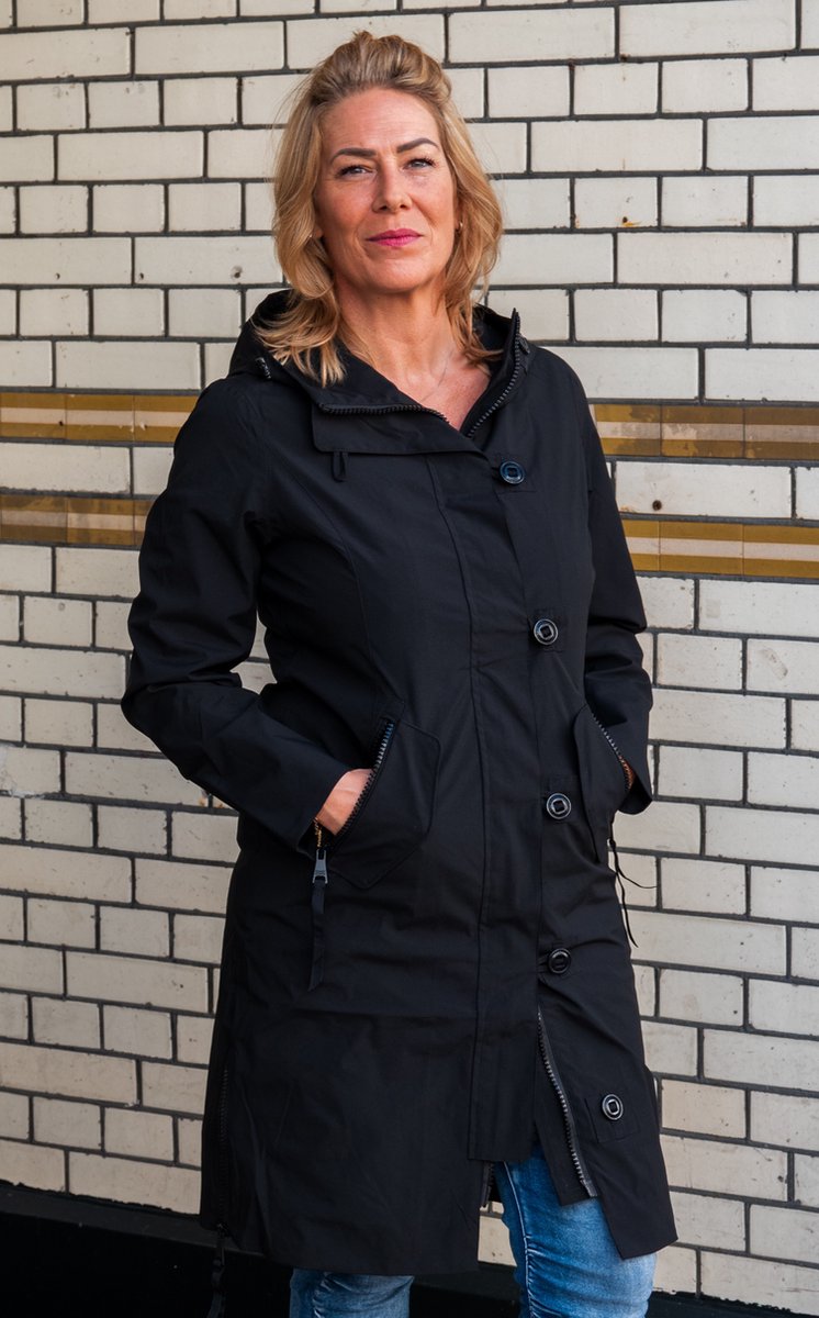 Lange dames tussenjas - Waterafstotend & getailleerd - Zwart - Maat 36