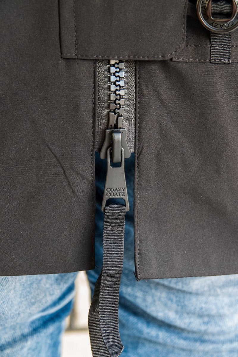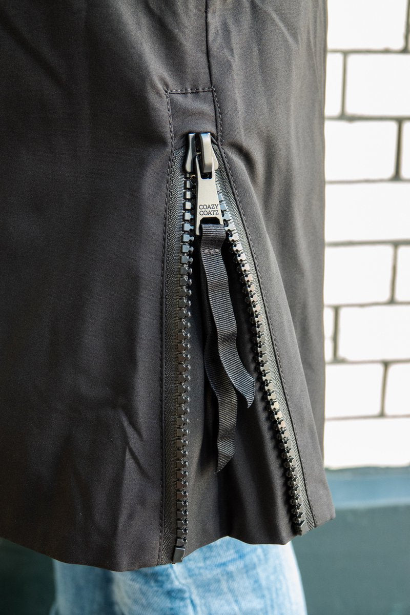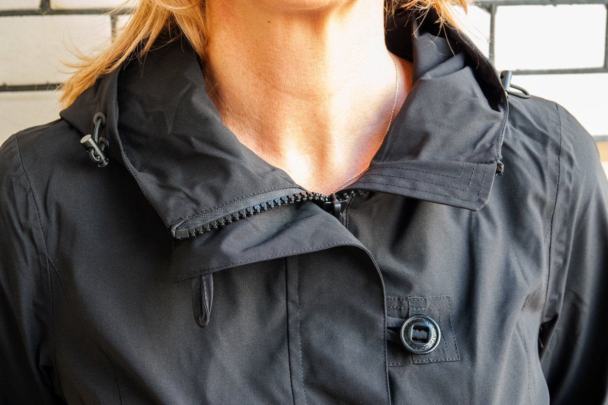 - Bewegingsvrijheid: volledige bewegingsvrijheid door de sterke deelbare rits en twee zijritsen. De middelste rits kan dus van beneden naar boven, wel zo handig op de fiets of als je de auto in wilt stappen.