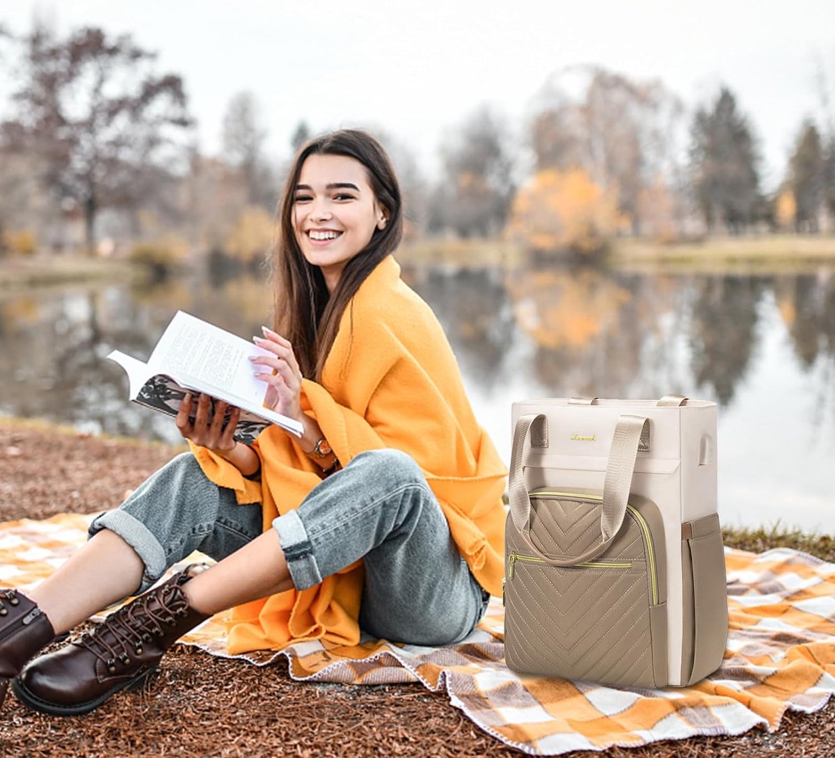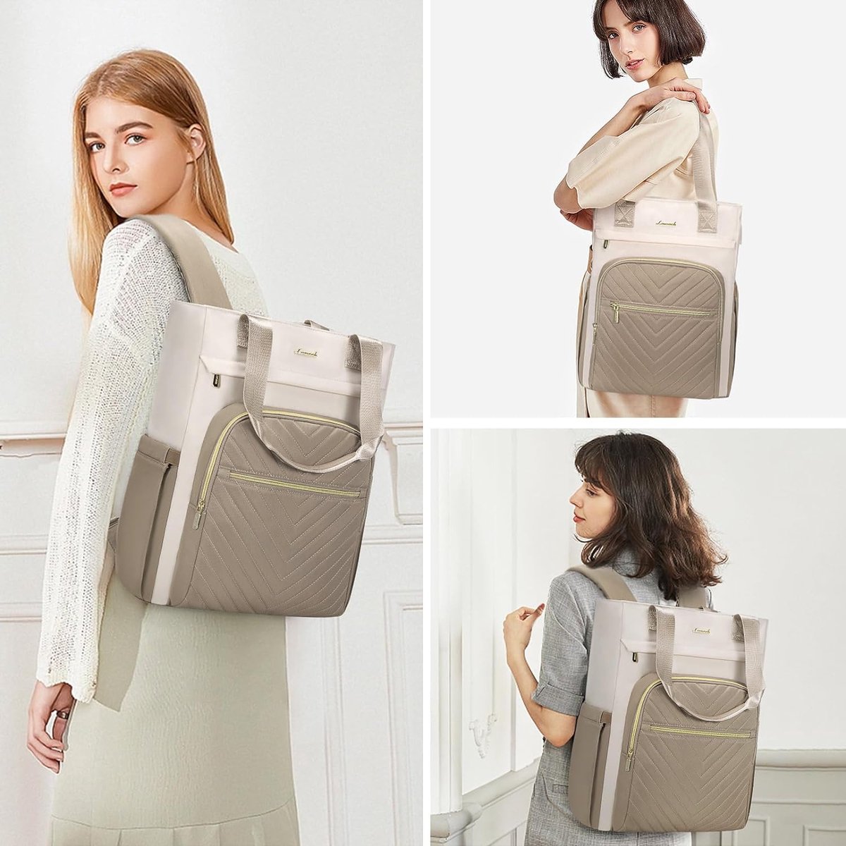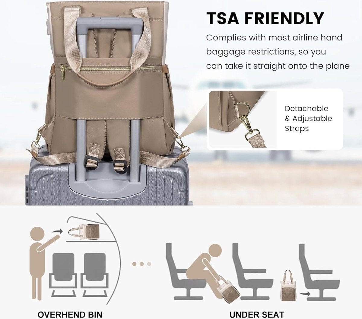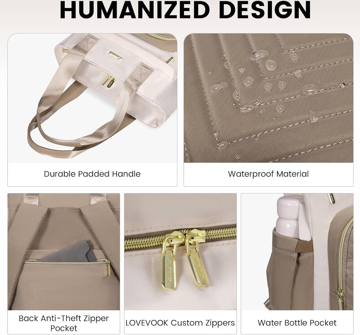 • 2-delige damesrugzak: deze laptoptas is uitgerust met een grote met leer beklede handgreep, die over de schouder of in de hand kan worden gehouden. De afneembare schouderriemgesp maakt het mogelijk om een uiteinde van de riem te verwijderen om hem aan de achterste bagageriem aan een trolley of koffer te plaatsen. Het is niet alleen een rugzak, maar ook een elegante schoudertas of een mooie handtas.