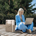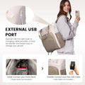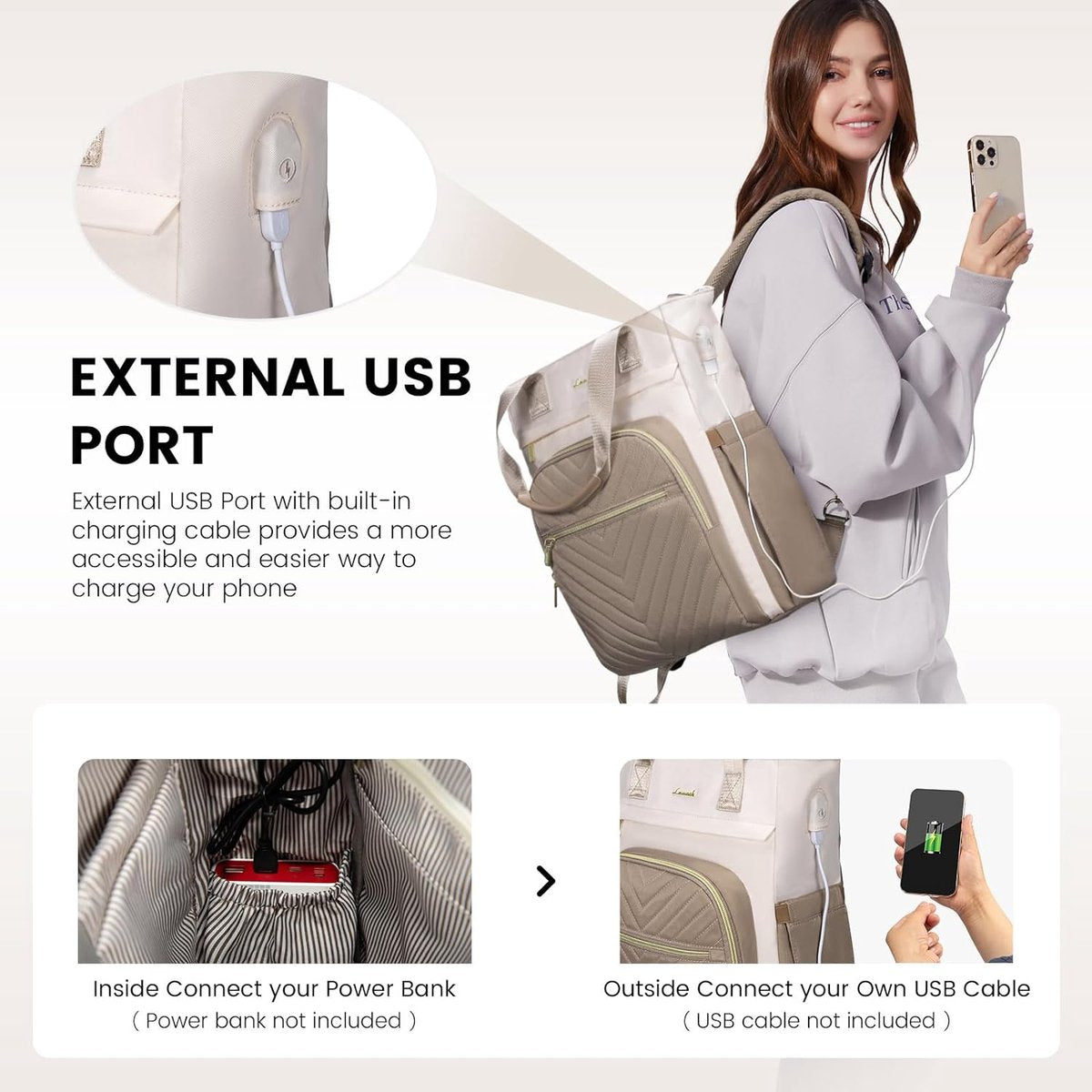 Laptoptas 15.6 inch - Beige/bruin - USB oplaadpoort - Laptop rugzak - 33 x 16 x 41 cm - Waterbestendig - Laptoprugtas 15,6 inch - Anti diefstal vak - Handtas met gouden details